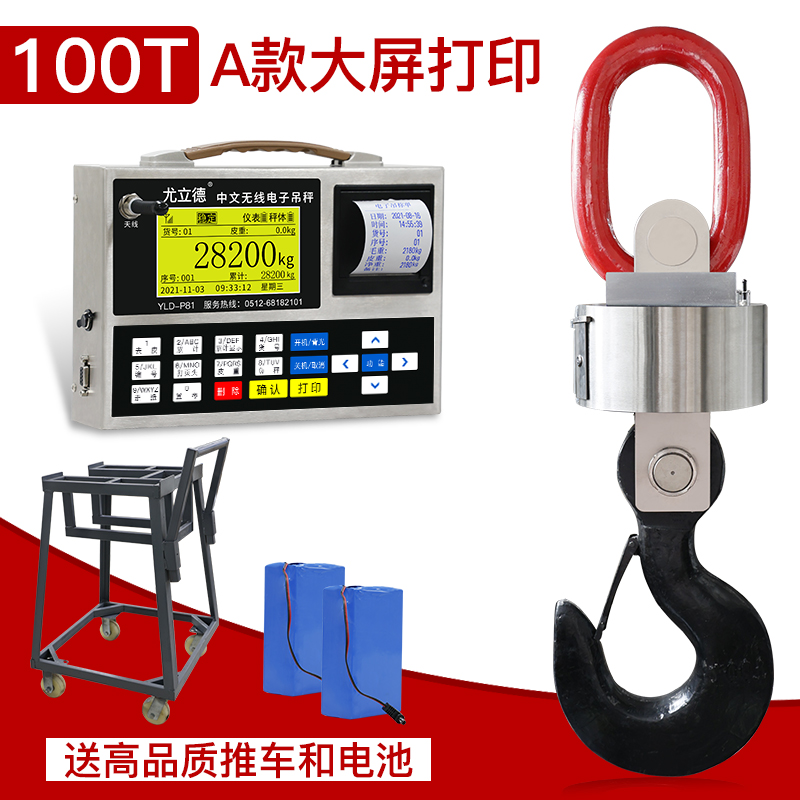 • [100톤] 스테인레스 스틸 크레인 스케일 + 무선 휴대용 인쇄/공장 직영, 트롤리 포함, 듀얼 배터리