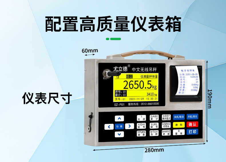 • [20톤] 스테인레스 스틸 크레인 스케일 + 무선 인쇄 장비/공장 직영, 트롤리 포함, 듀얼 배터리