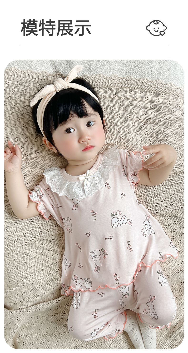 아기 반팔 바지 정장, 여자 아기 투피스 세트, 귀여운 여자 옷, 스플릿 잠옷, 여자 에어컨 옷