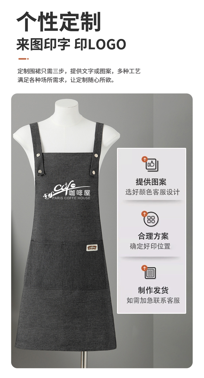 한국 패션 커피숍 그림 밀크티 가게 남녀 작업복 홈 주방 앞치마가 인쇄된 데님 앞치마스토어 가기