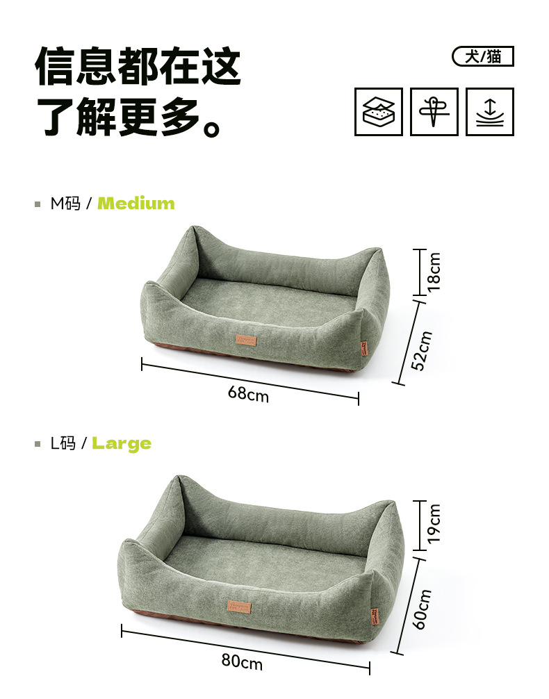 Tianyuan Pet_사계절 사용 가능한 사각 소파 개집, 탈부착 및 세탁 가능한 개집, 중소형견이 잠을 잘 수 있는 침대