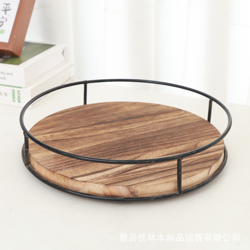 단단한 나무 회전식 주방 조미료 트레이 홈 욕실 욕실 세면 용품 보관함 데스크탑 스낵 트레이스토어 가기