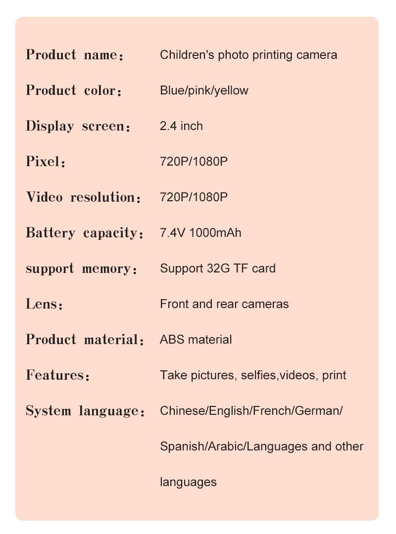 국경 간 새로운 어린이 폴라로이드 고 픽셀 만화 인쇄 카메라 즉석 휴대용 카메라 사용자 정의