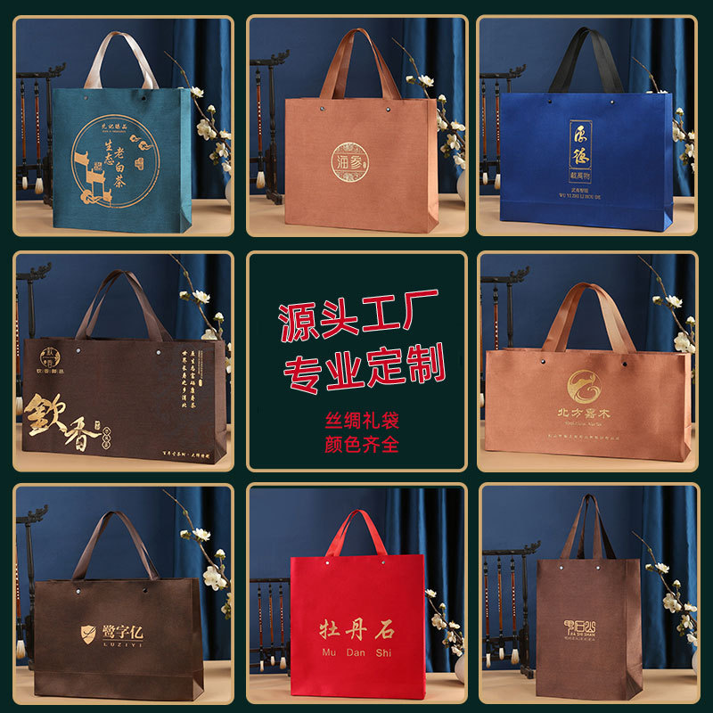 소스 공장 핸드백, 기념품 가방, 맞춤형 가죽, 맞춤형 기업 고급 느낌의 레드 와인 실크 선물 가방스토어 가기