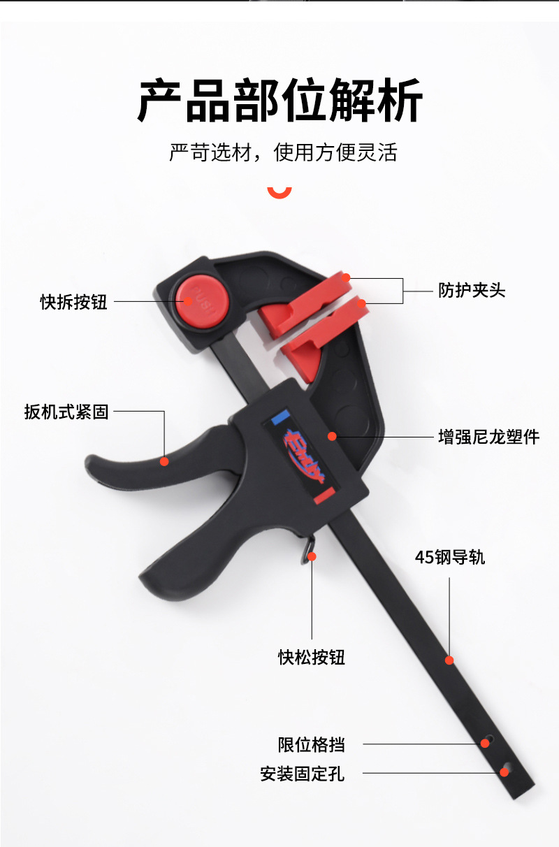 F 클램프, 빠른 목공 클램프, 양방향 지지 목공 클램프, 템플릿 가구 클램프, 목공 전용 강력 고정 클램프