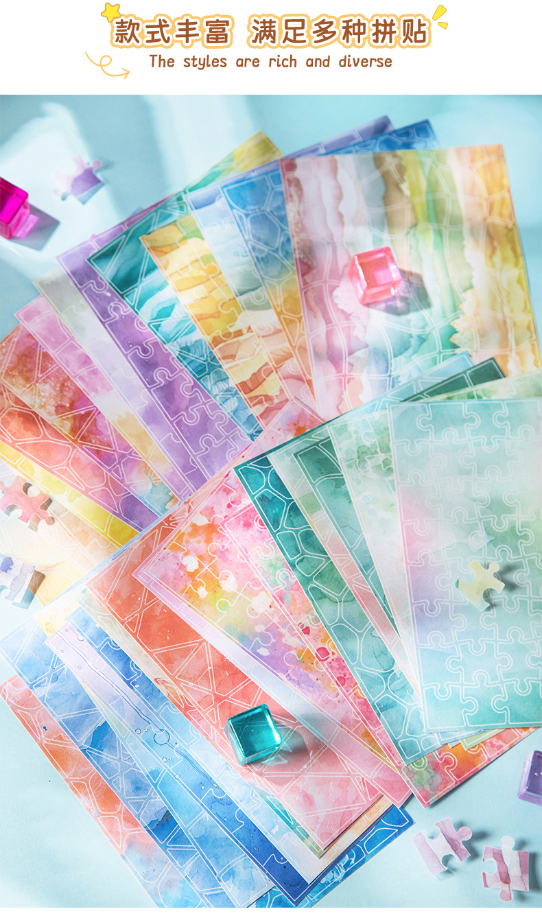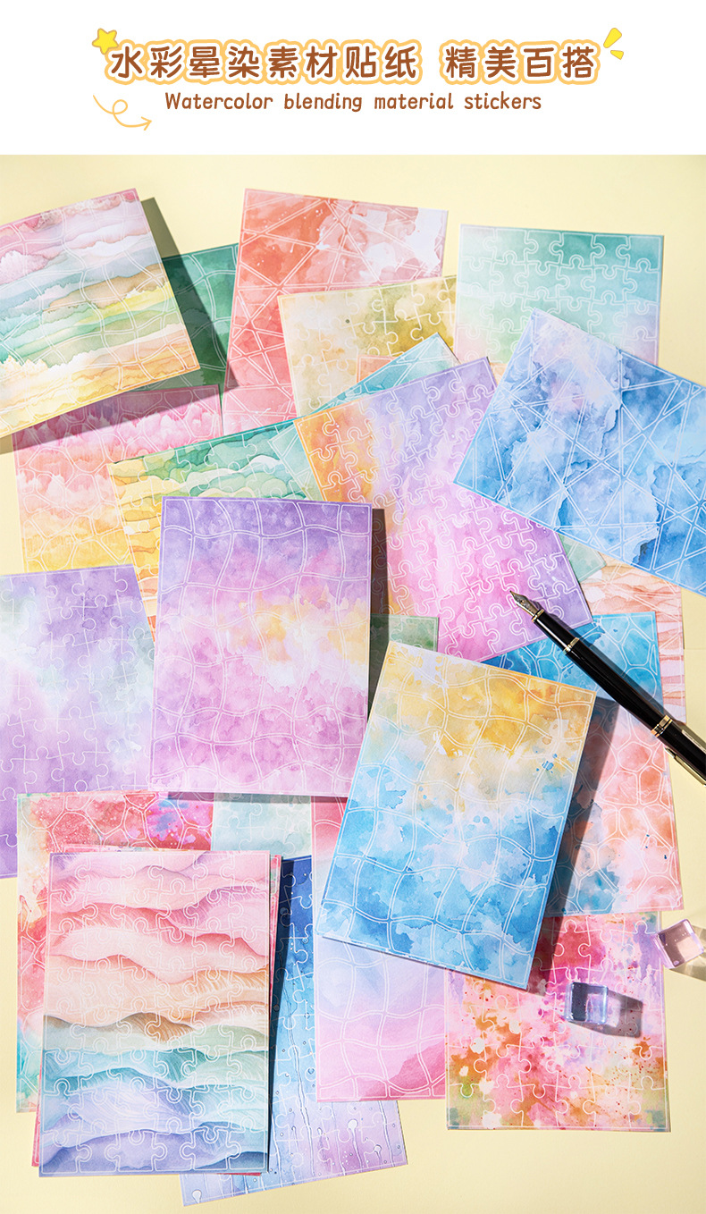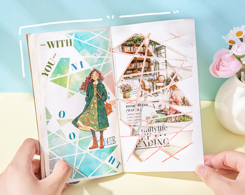 콜라주 스티치 재미있는 수채화 재료 다이 컷 스티커 복고풍 컬러 배경 콜라주 장식 베이스 용지스토어 가기
