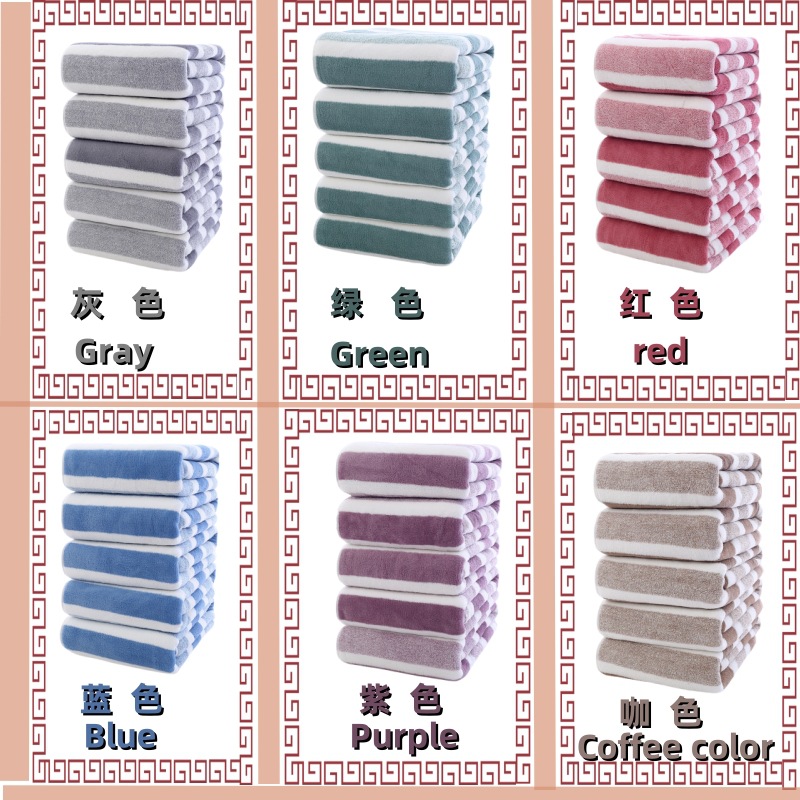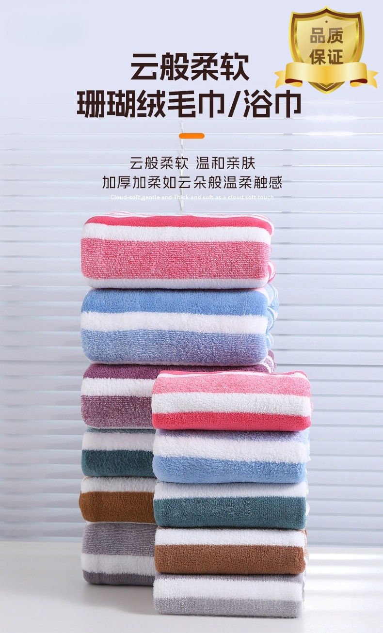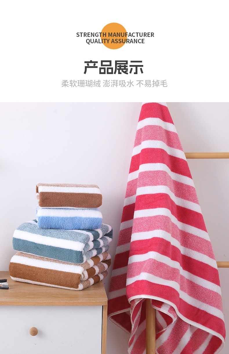 타올 세트 산호 벨벳 3색 스트립 와이드 스트립 목욕 타월 타월 스퀘어 타올 세트 성인 목욕 타월 세트 3종 세트스토어 가기