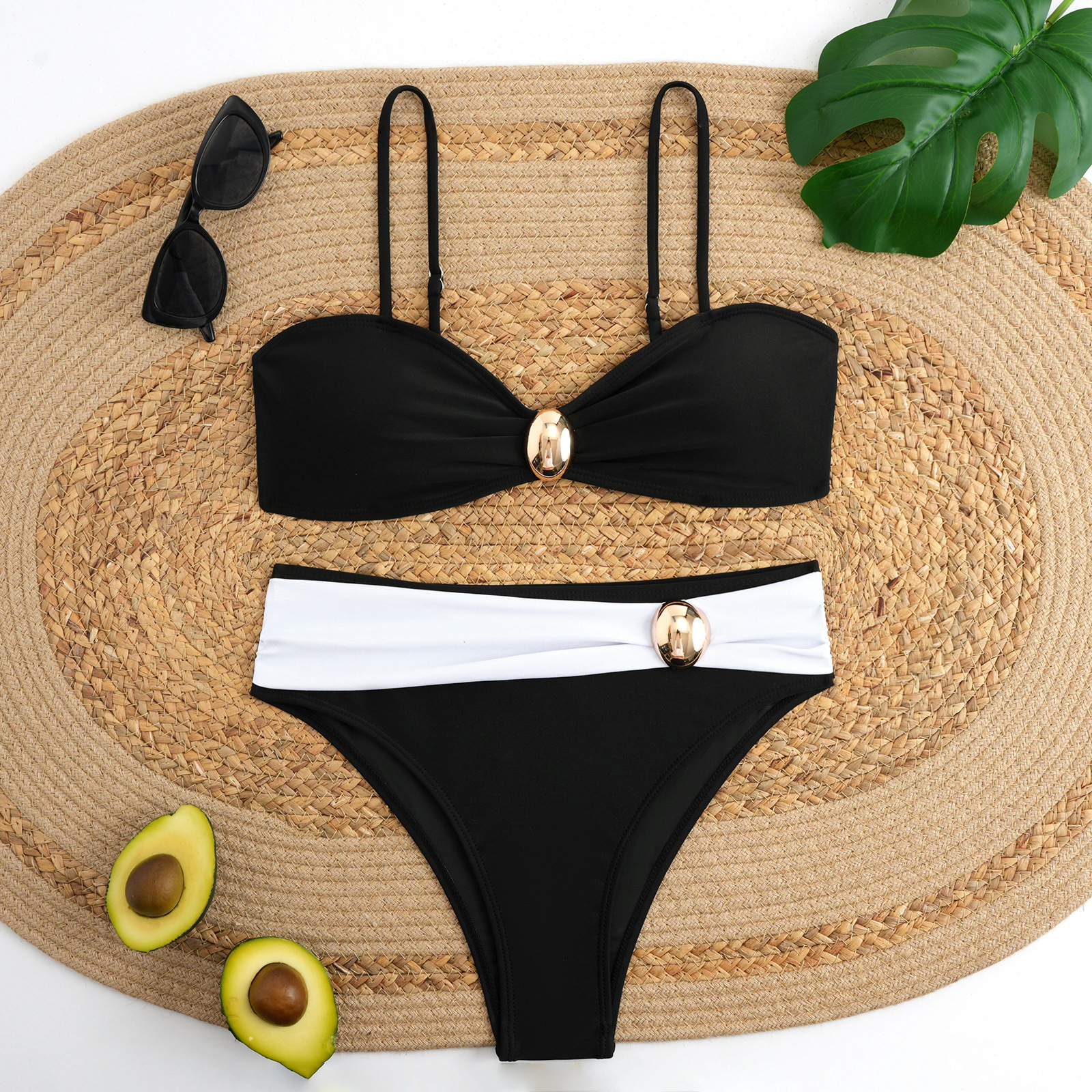 2025 패션 새로운 유럽과 미국의 국경 간 색상 매칭 섹시한 비키니 수영복 여성 여름 해변 비키니 세트스토어 가기