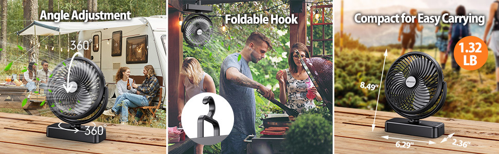 국경 간 대외 무역 대용량 배터리 구동 캠핑 팬 라이트 USB 후크 팬 LED 라이트 캠핑 램프 야외스토어 가기