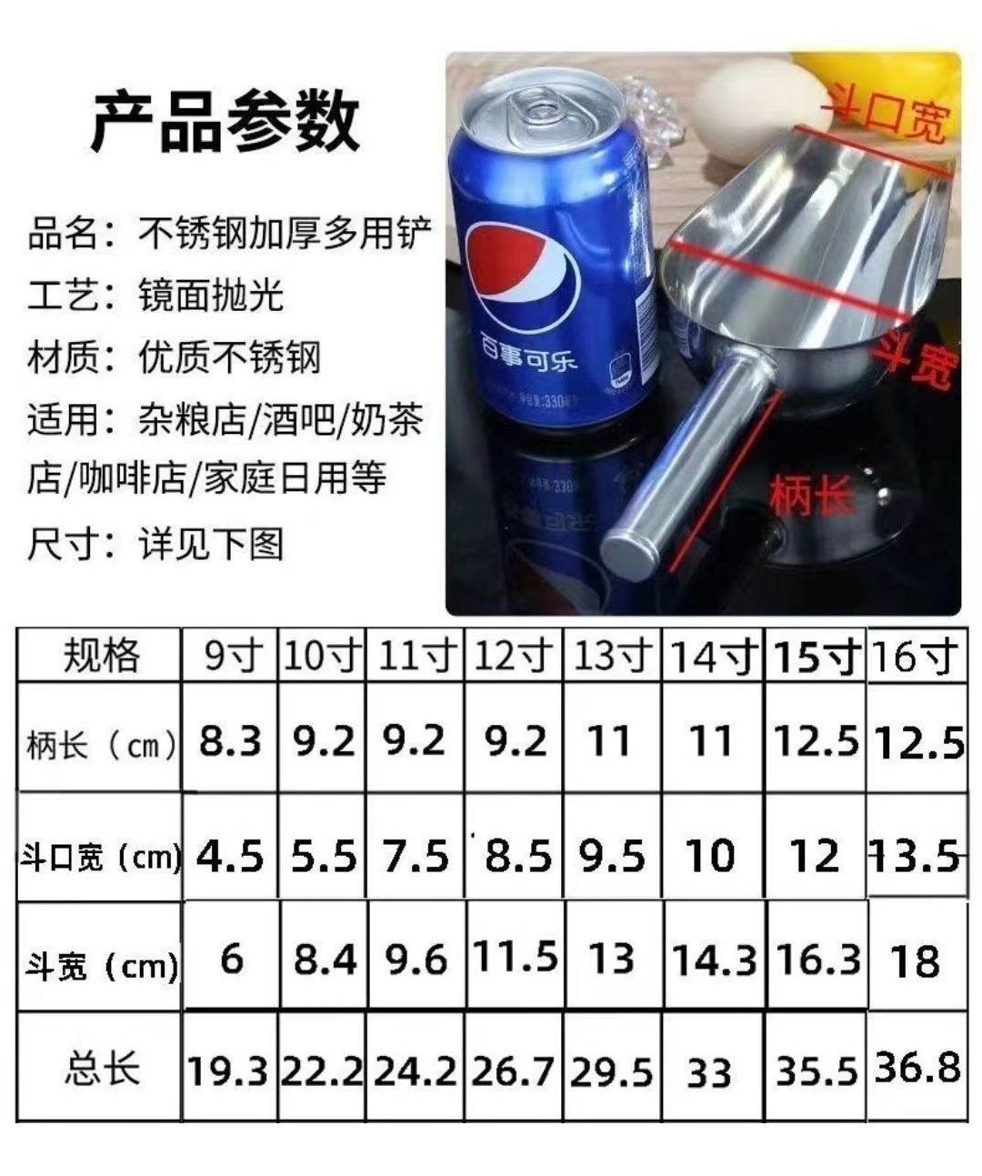 곡물, 멜론 씨앗, 식품, 얼음, 팝콘, 얼음 조각, 스테인레스 스틸 곡물, 밀가루 판매대용 두꺼운 삽