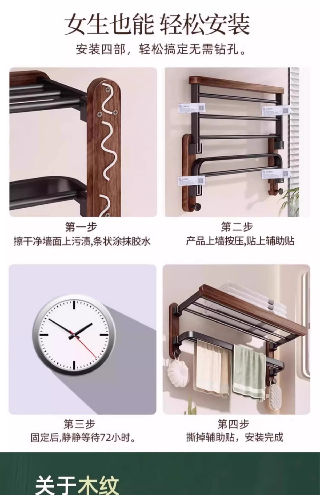 호두무 펀치프리 수건걸이, 목욕타월걸이, 욕실수납선반, 욕실화장실, 고급화장실, 화장실스토어 가기