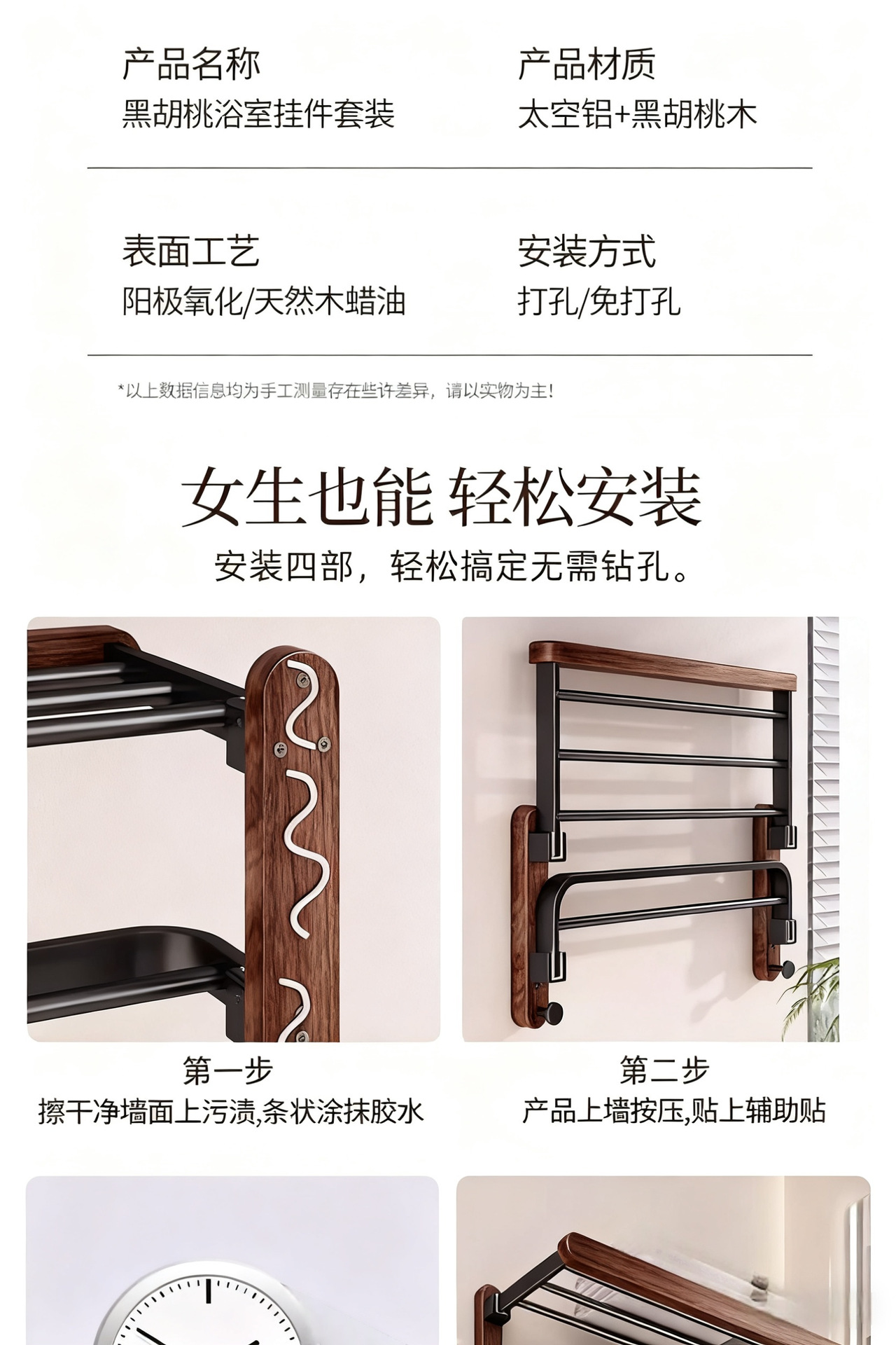 호두무 펀치프리 수건걸이, 목욕타월걸이, 욕실수납선반, 욕실화장실, 고급화장실, 화장실