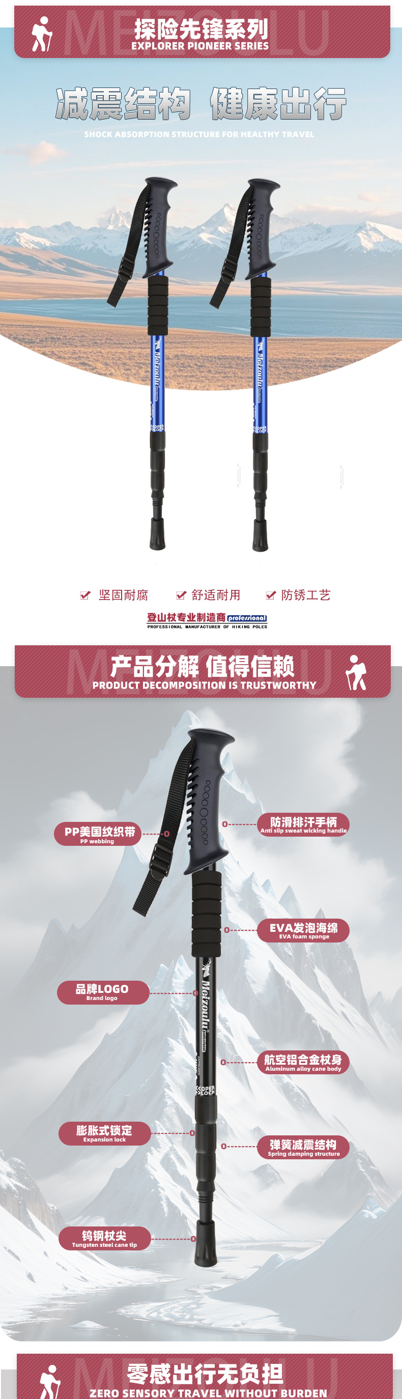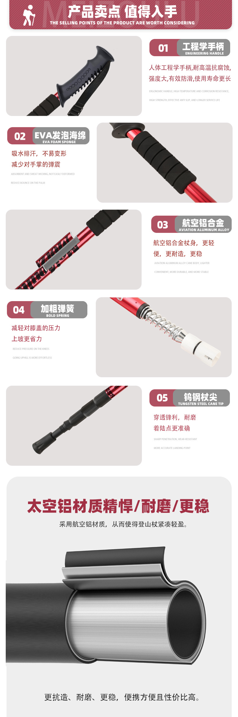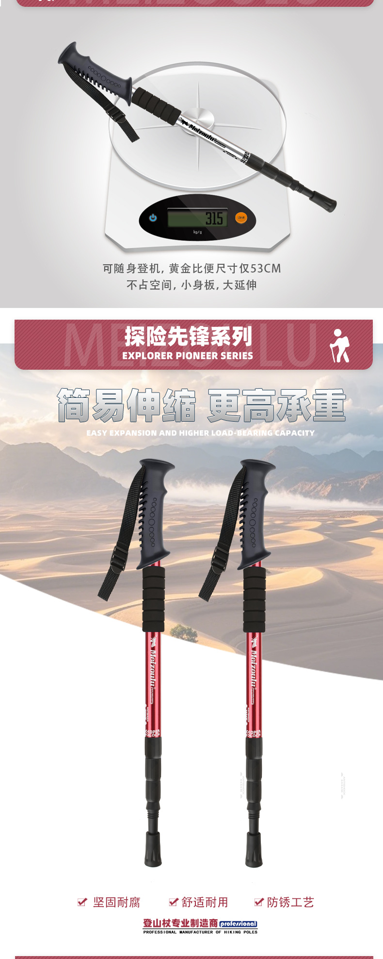 [공장] 크로스보더 등산 스틱, 스키용 초경량 접이식 텔레스코픽 워킹 스틱, 등산용 알루미늄 합금 지팡이스토어 가기