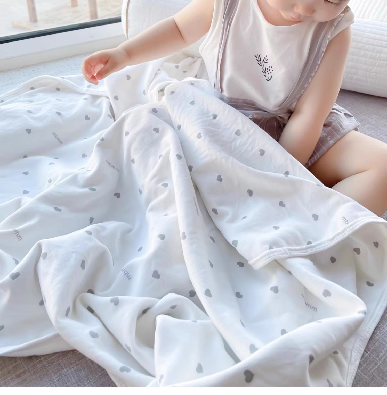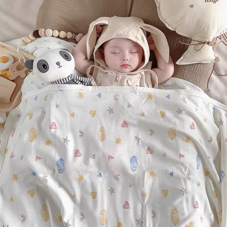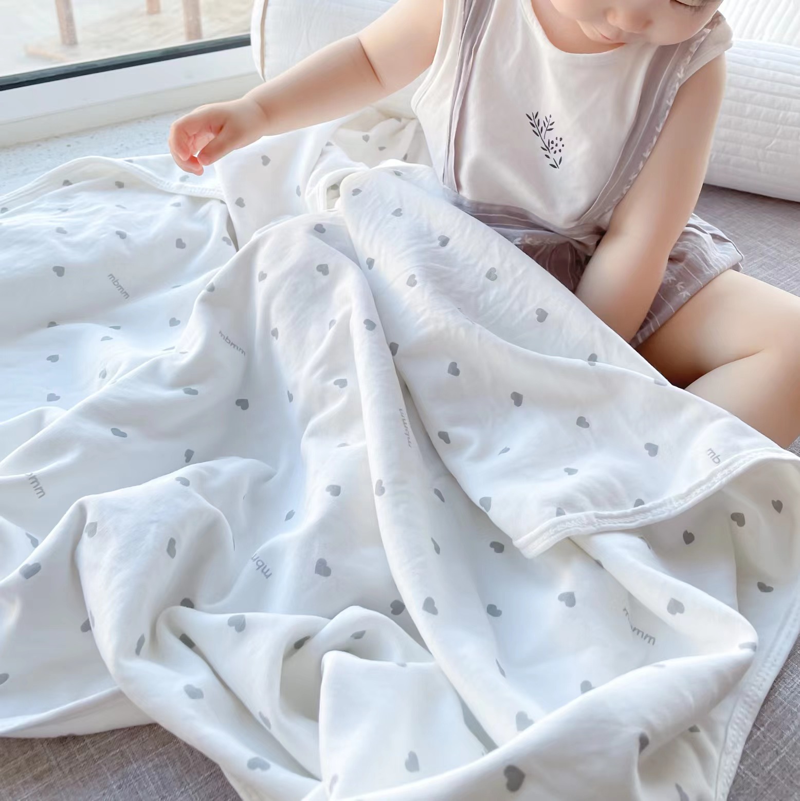 신생아 담요, 아기 에어컨 이불, 순면 사계절 얇은 이불, 랩 타월, 유모차 담요, 니트 면 더블 레이어