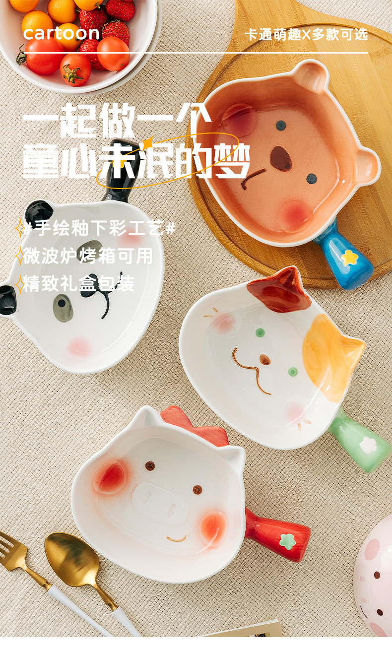 귀여운 모양의 베이킹 그릇 가정용 세라믹 인스 스타일 샐러드 그릇 손잡이가있는 인스턴트 국수 그릇 인터넷 연예인 식기 손잡이 그릇스토어 가기