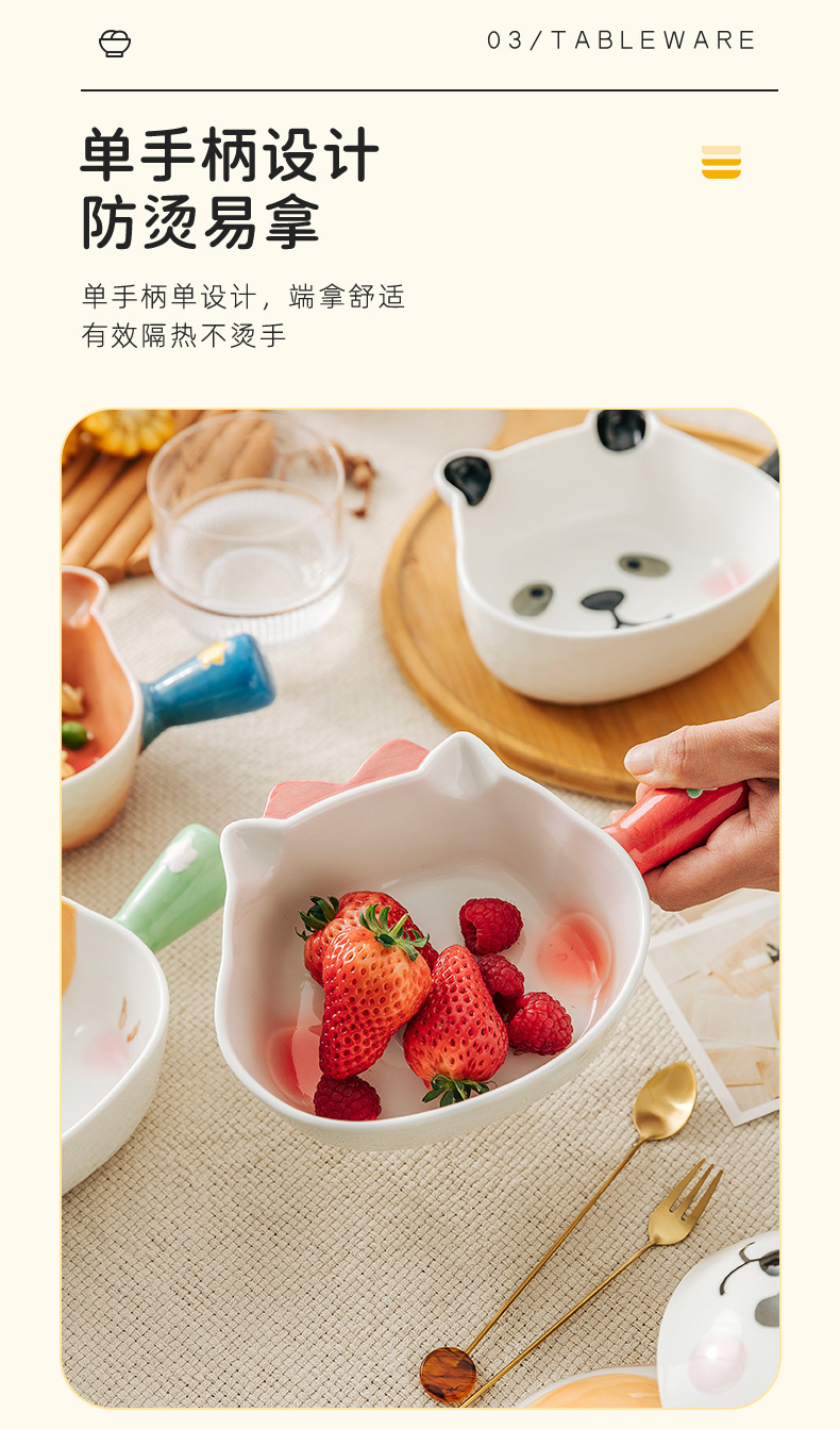 귀여운 모양의 베이킹 그릇 가정용 세라믹 인스 스타일 샐러드 그릇 손잡이가있는 인스턴트 국수 그릇 인터넷 연예인 식기 손잡이 그릇