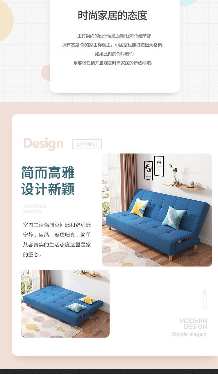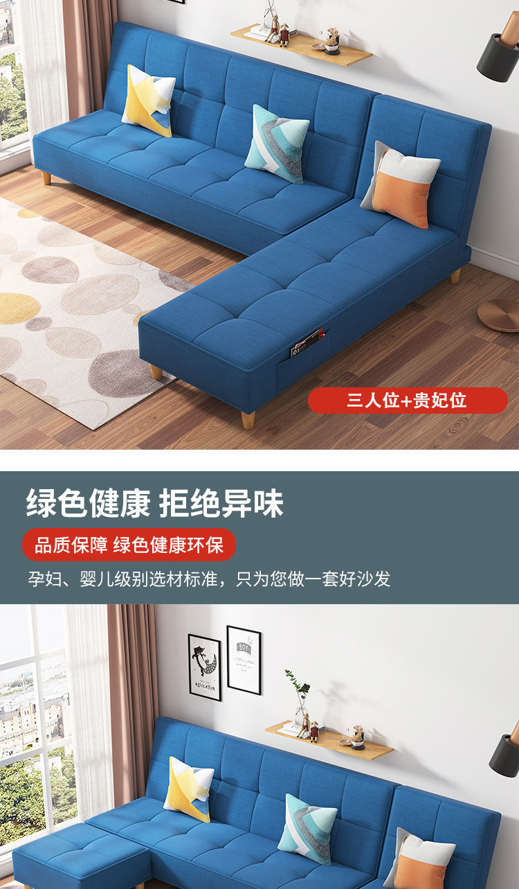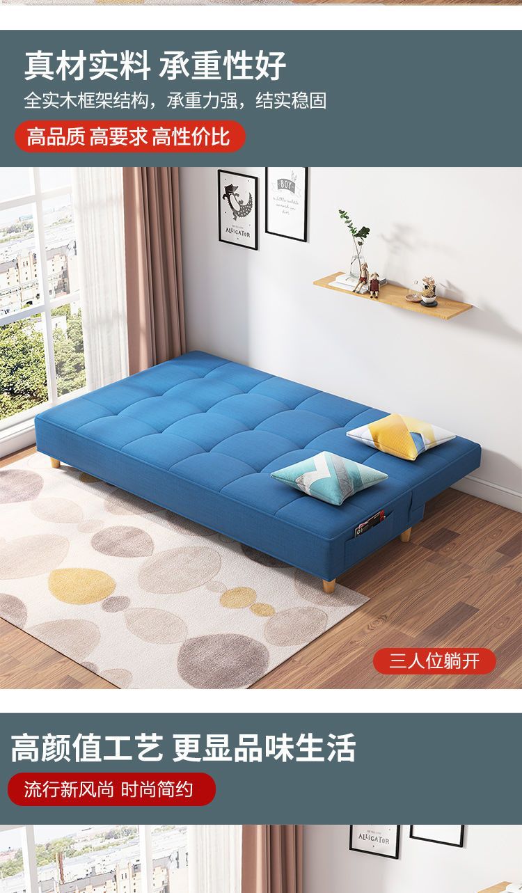 작은 아파트 소파 베드 접이식 거실 더블 3인용 간단한 노워시 기술 천 소파 이중 용도 게으른 사람스토어 가기