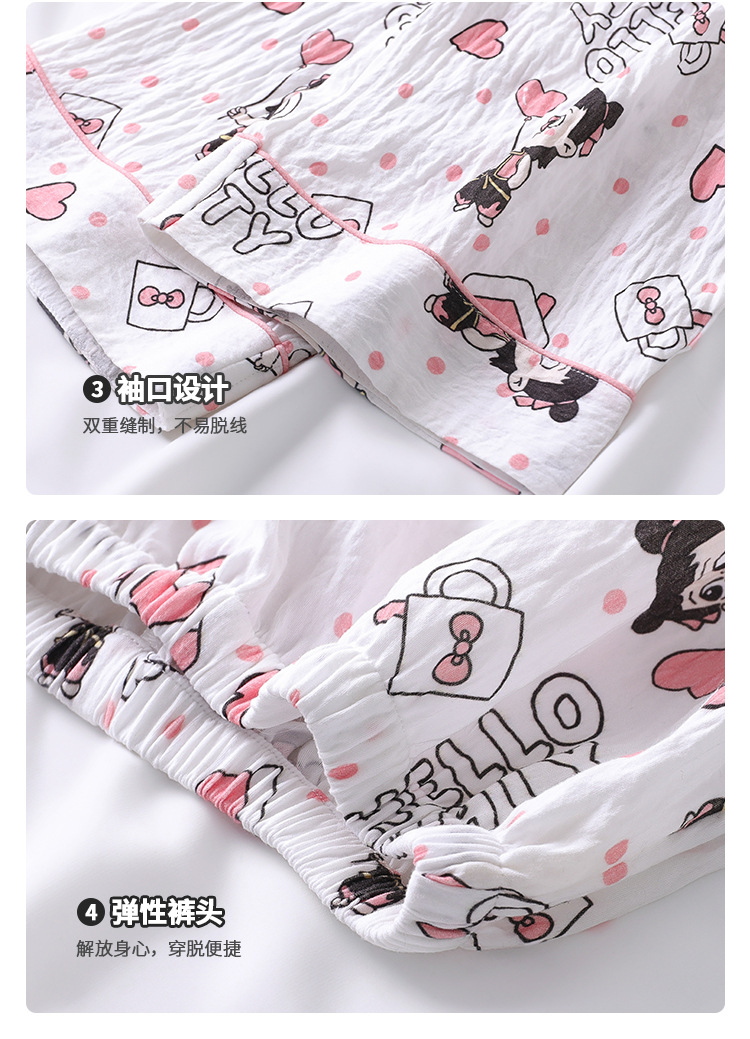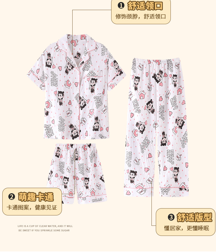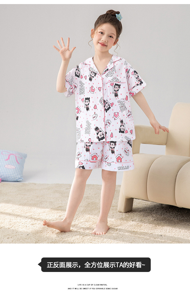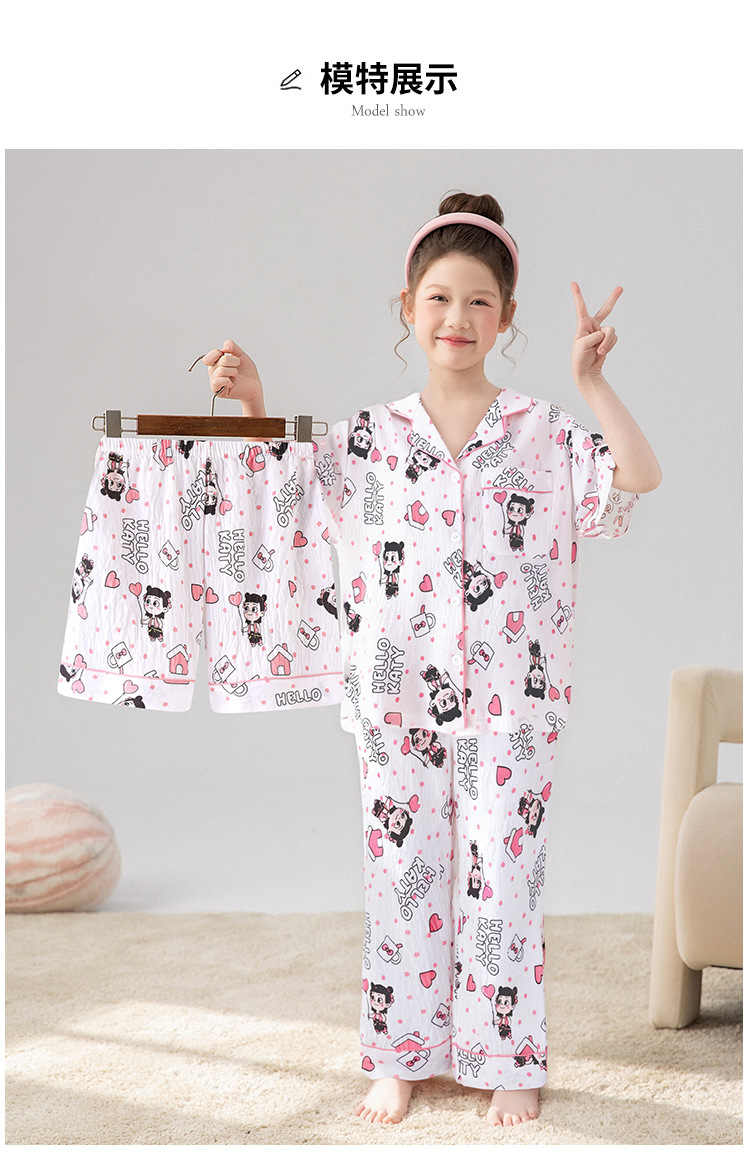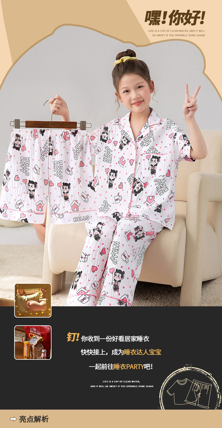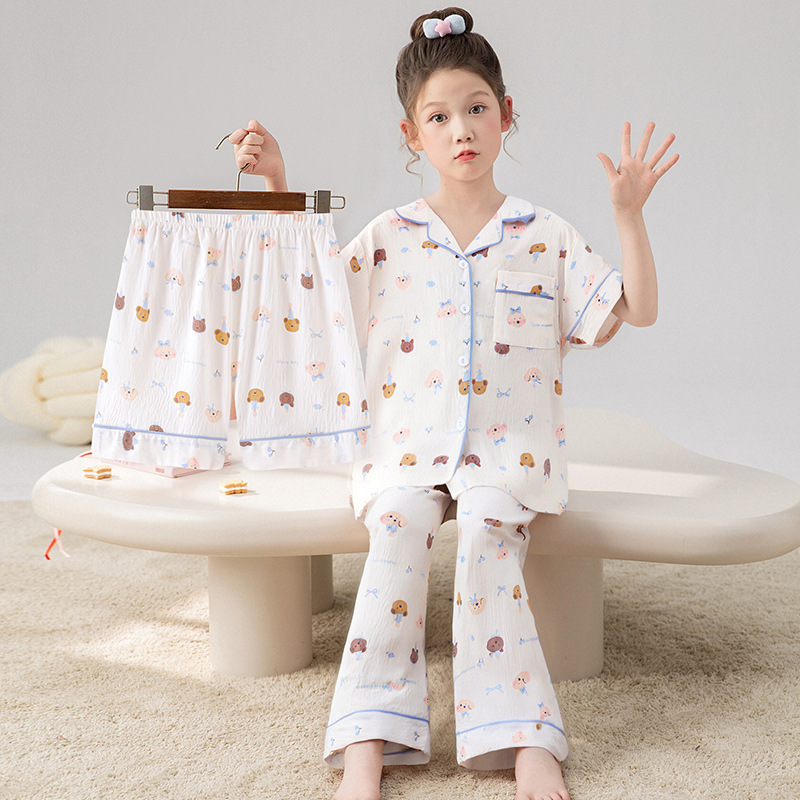 여름 여아용 아동 잠옷 3종 세트, 중학생용 구름면 얇은 에어컨 홈웨어스토어 가기