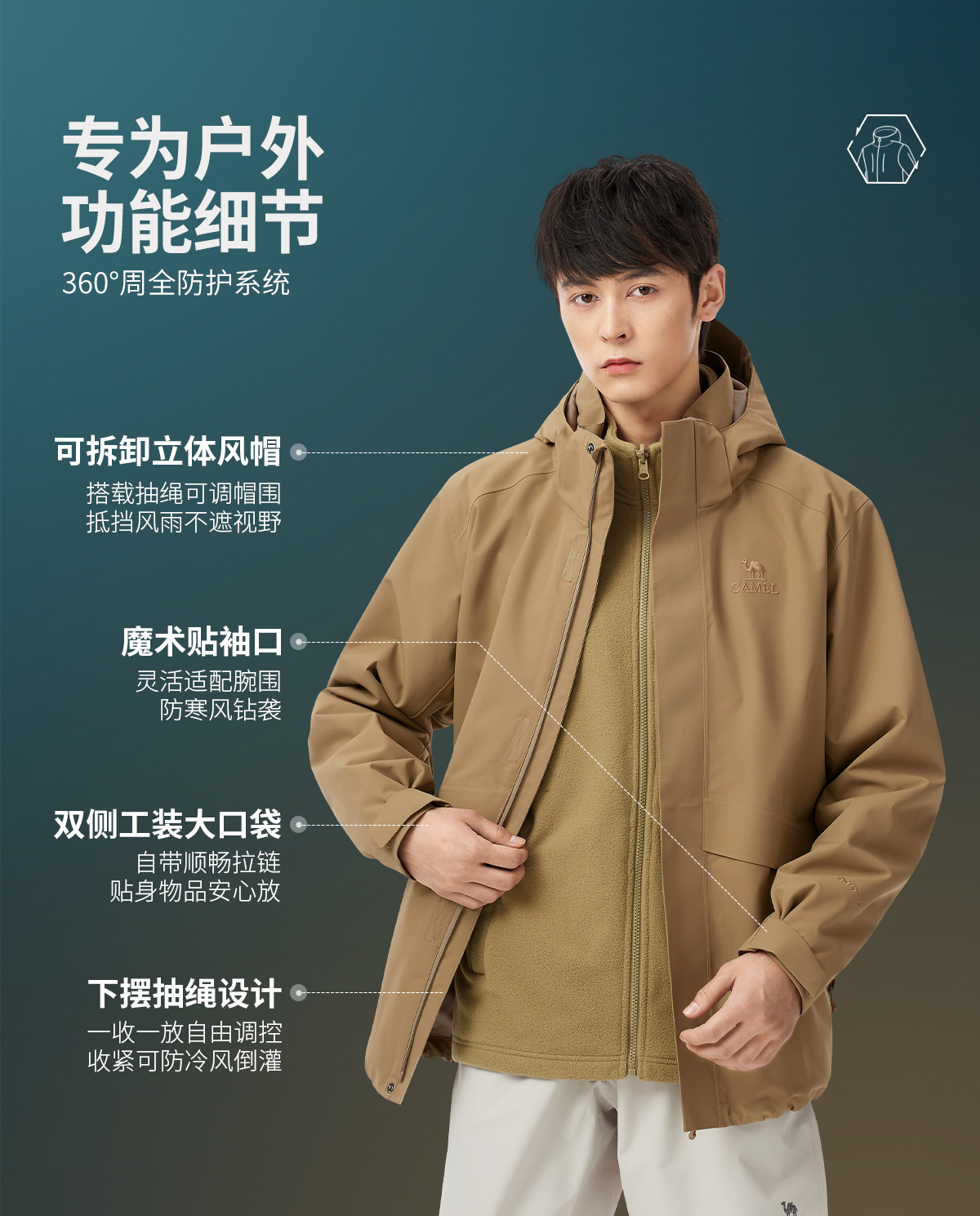 카멜 재킷 3-in-1 커플 아웃도어 재킷 안감 폴라 플리스 3방지 등산 및 하이킹 의류스토어 가기