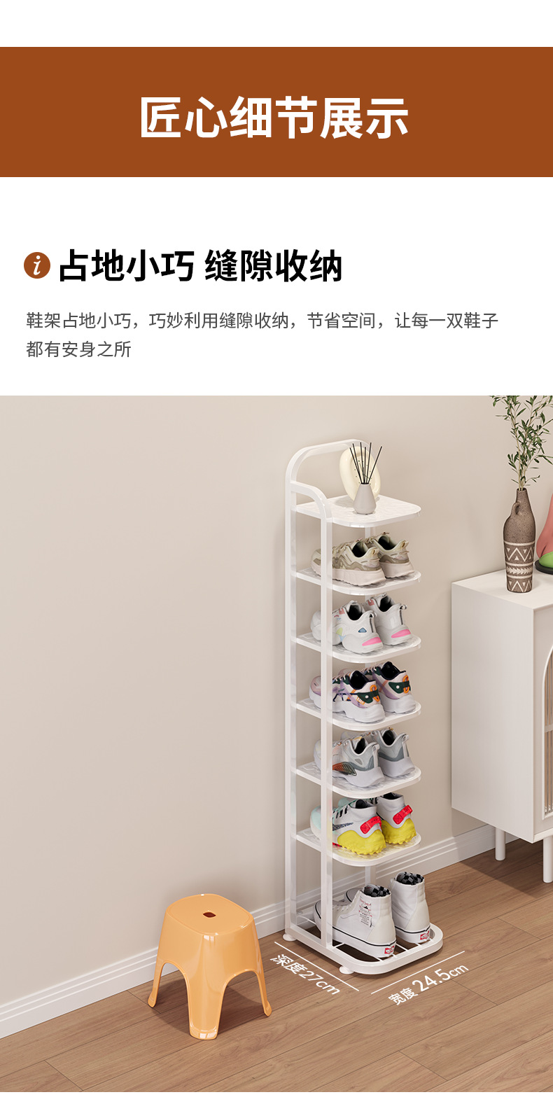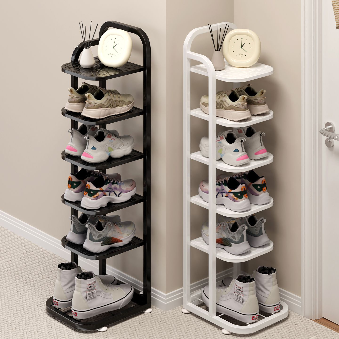 간단한 신발장, 작은 좁은 문, 다층 신발 보관함, 방진 수직 공간 절약형 보관함