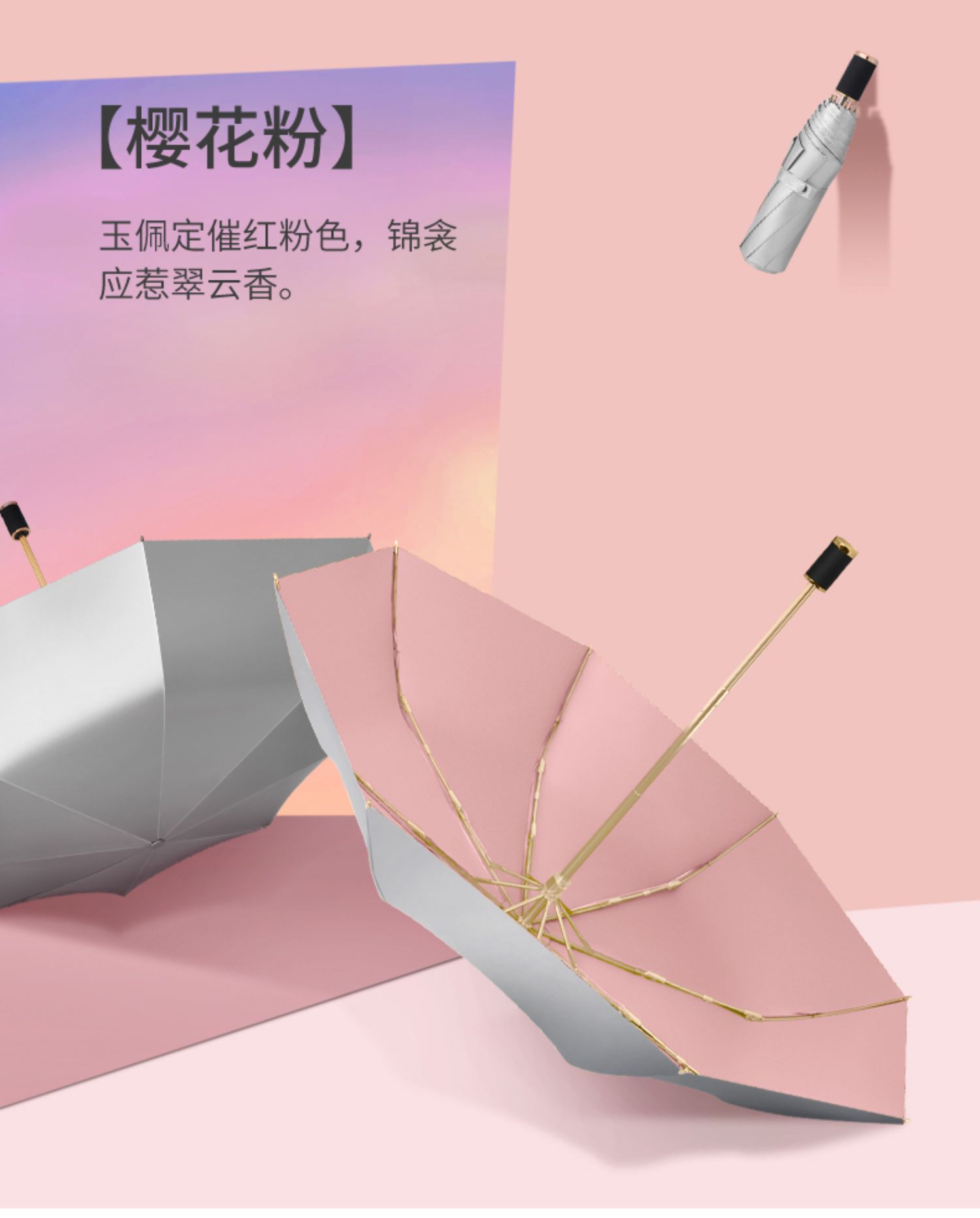 • 사쿠라 핑크 더블 레이어 티타늄 실버 + 비닐 우산