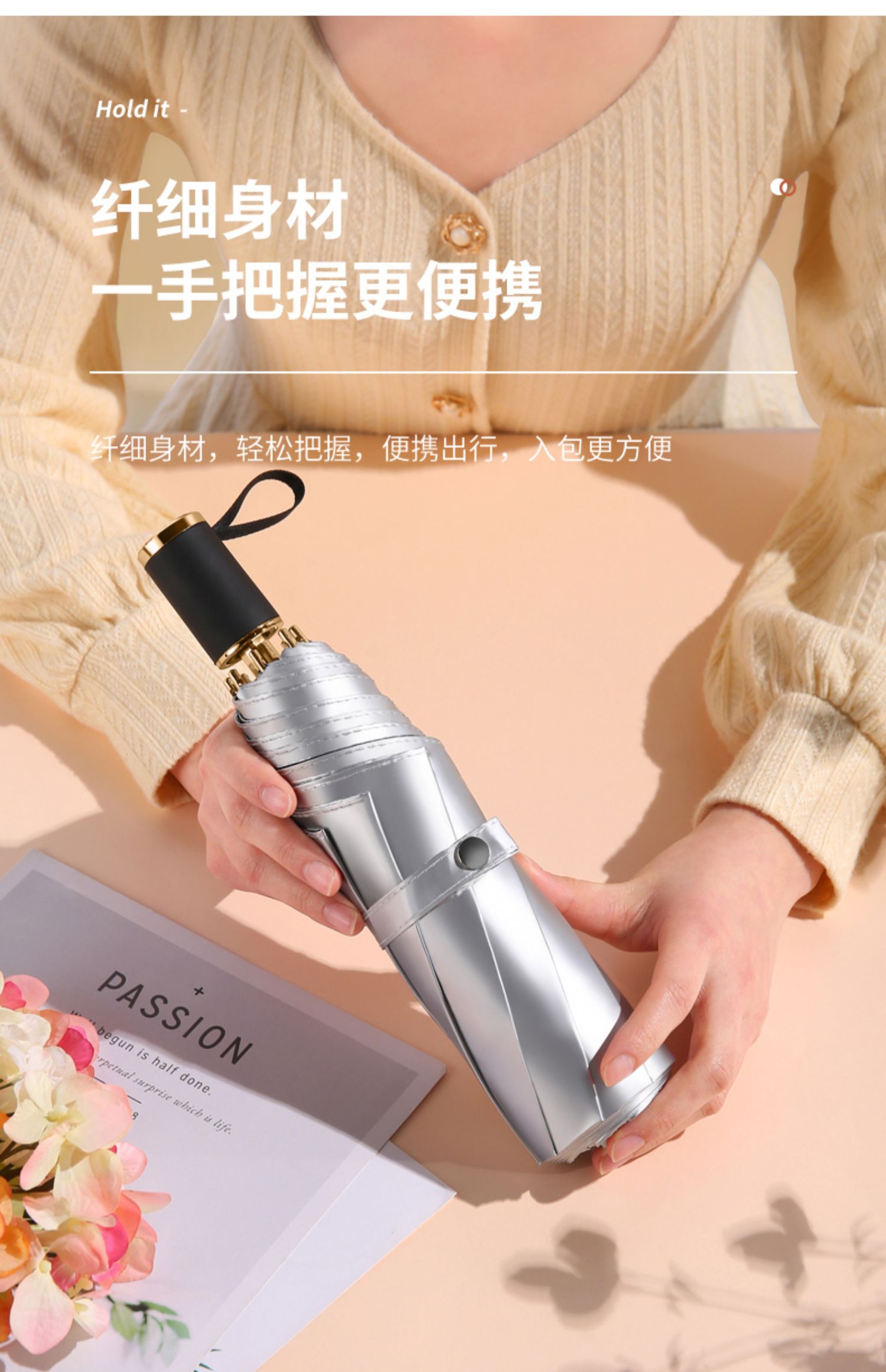 • 살구 베이지 더블 레이어 티타늄 실버 + 비닐 우산