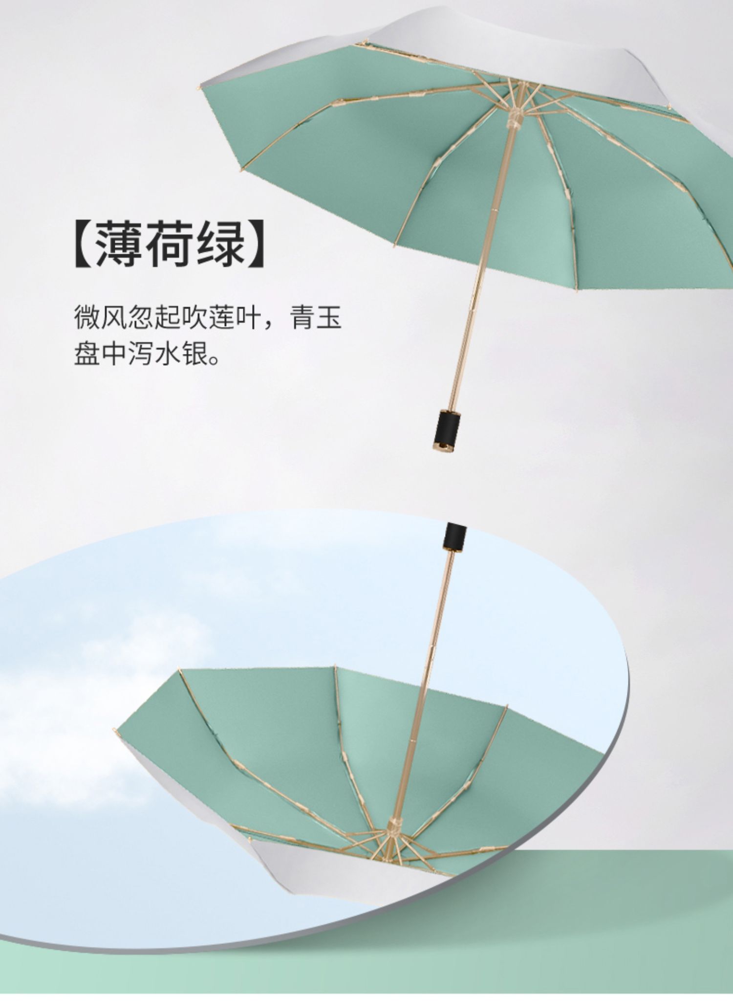 • 민트 그린 더블 레이어 티타늄 실버 + 비닐 우산