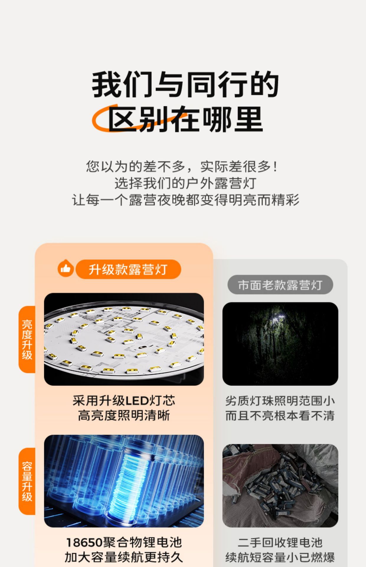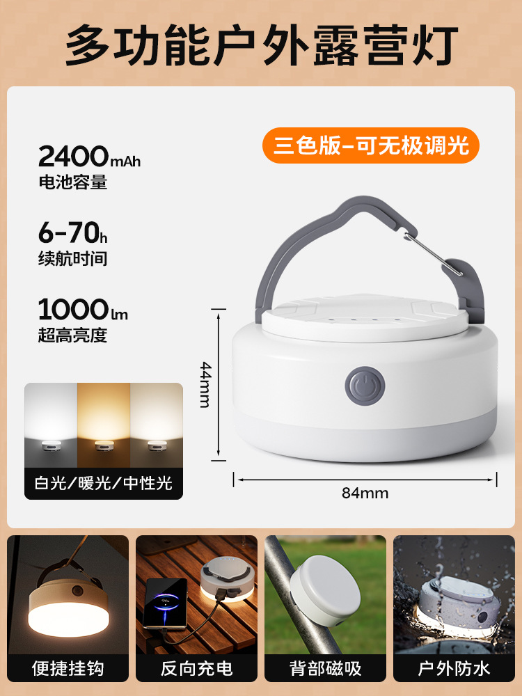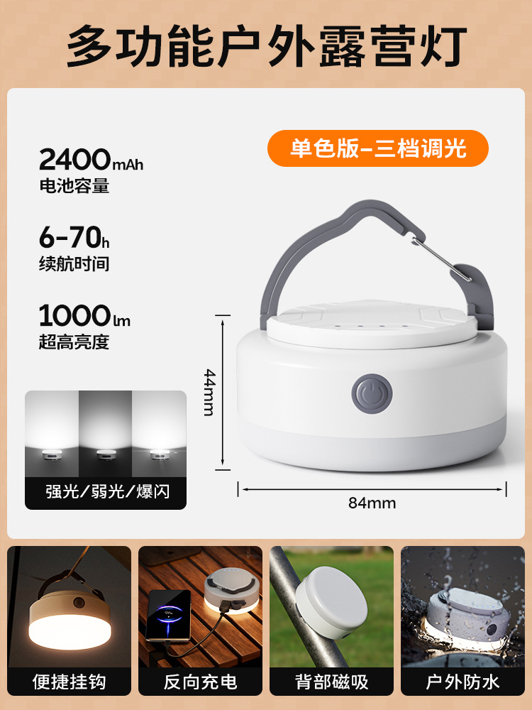 휴대용 캠핑 충전식 텐트 램프, 실외 조명 전구, 매우 긴 배터리 수명, 비상용 매우 밝은 캠핑 램프스토어 가기