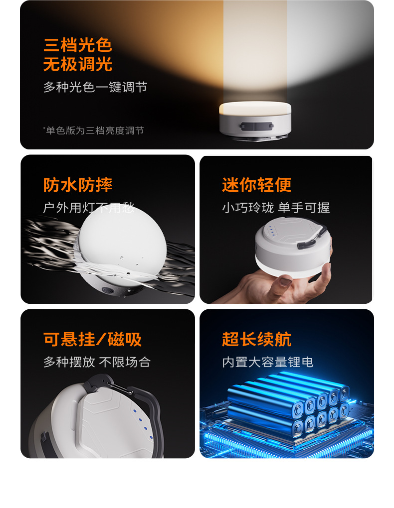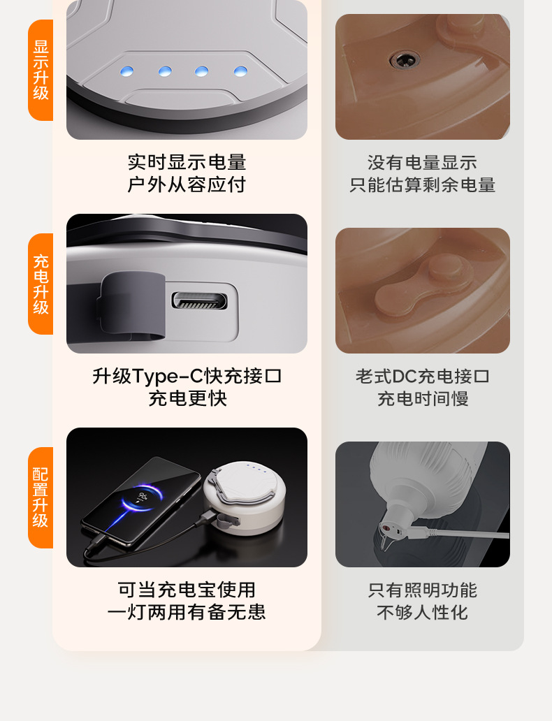 휴대용 캠핑 충전식 텐트 램프, 실외 조명 전구, 매우 긴 배터리 수명, 비상용 매우 밝은 캠핑 램프