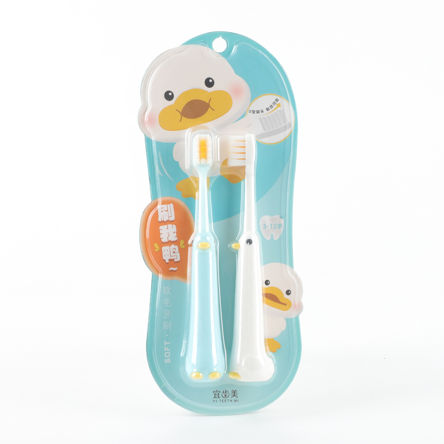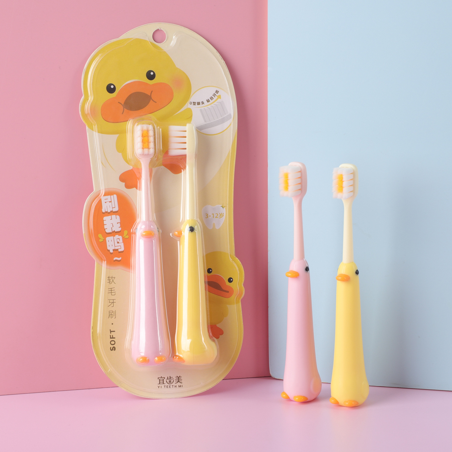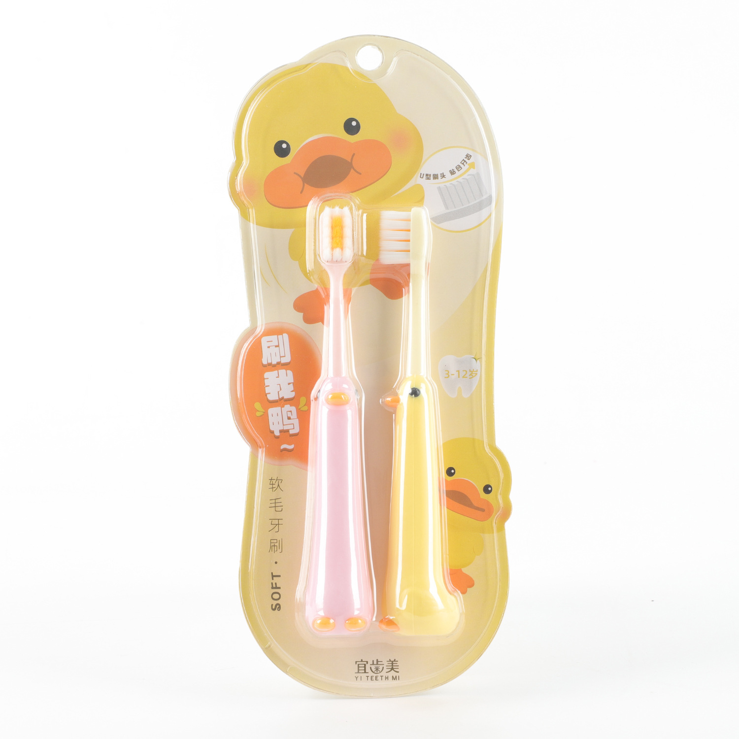 Yijimei 어린이 칫솔 2 팩 만화 작은 노란색 오리 가정용 청소 및 잇몸 보호 Douyin 슈퍼마켓 공장 도매스토어 가기