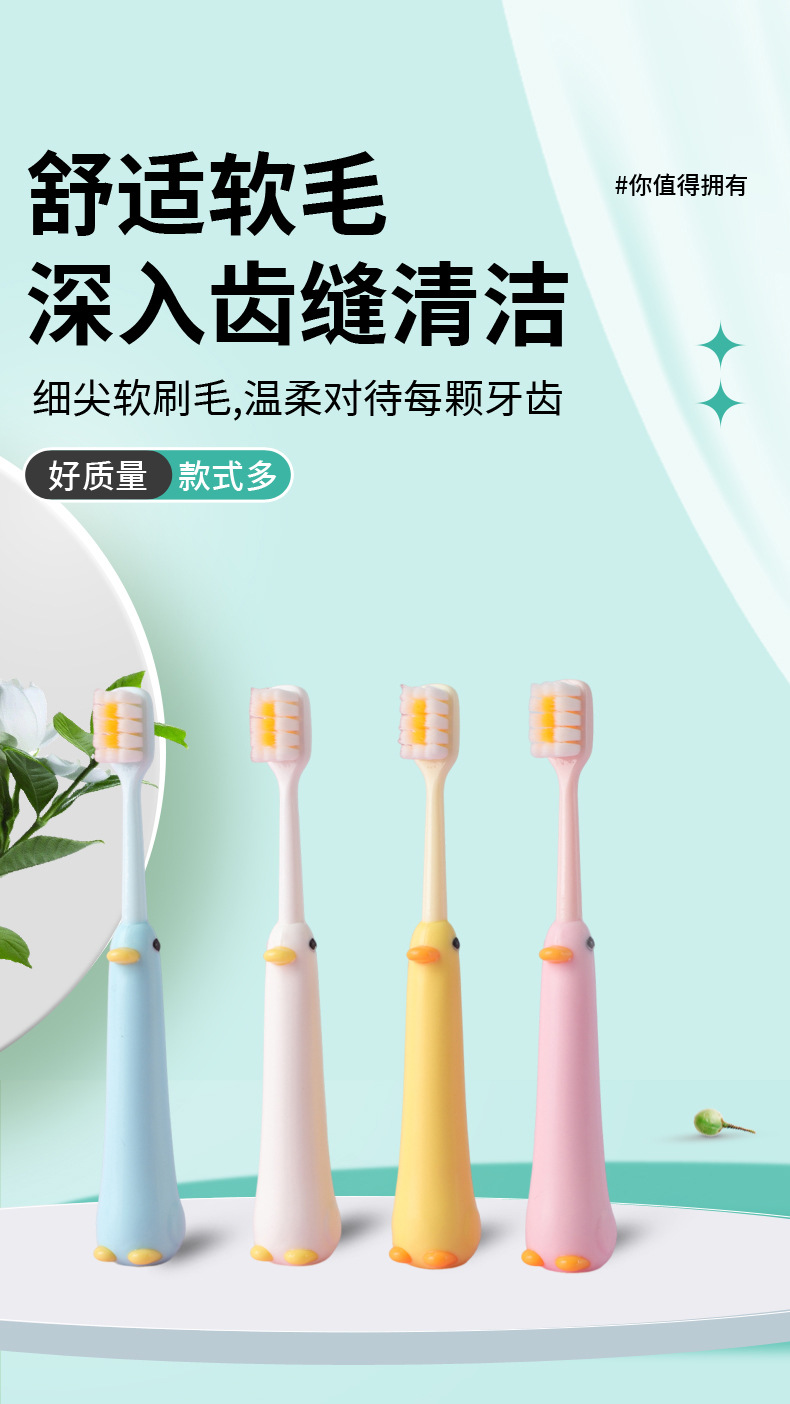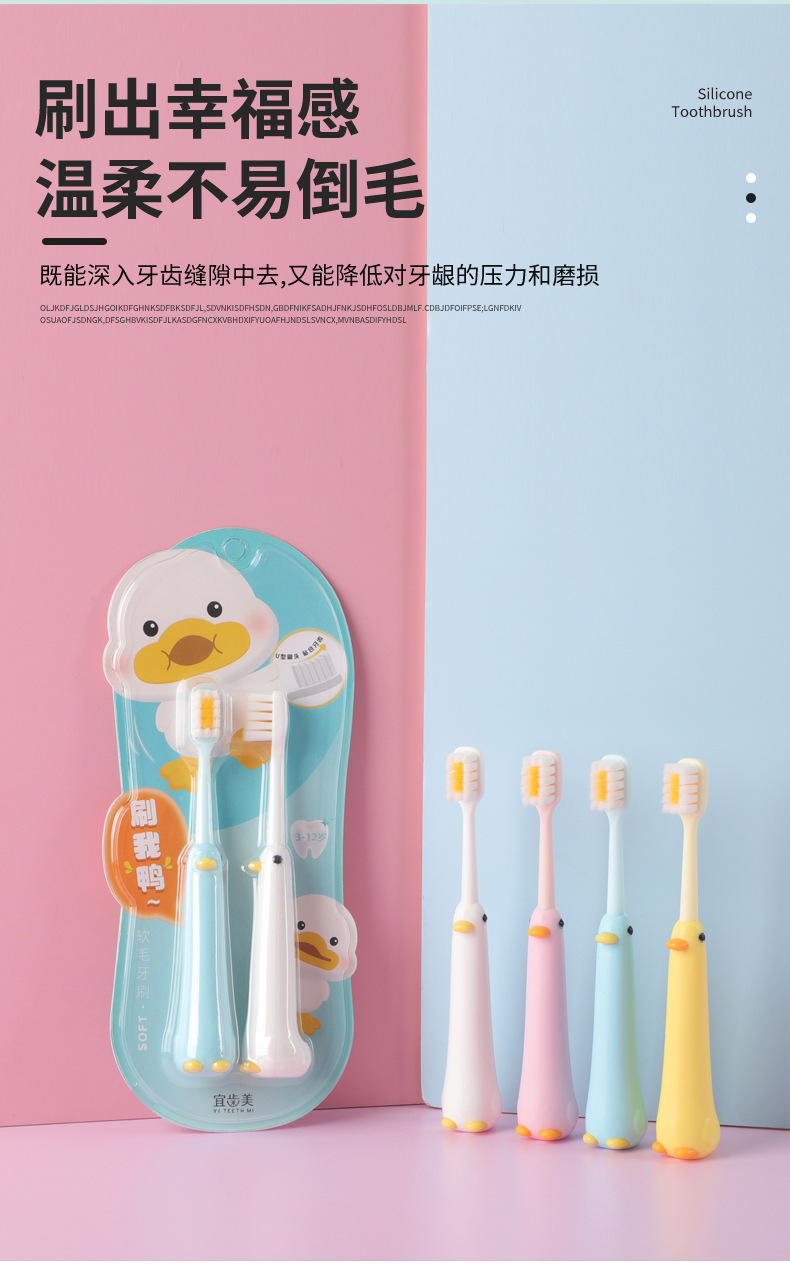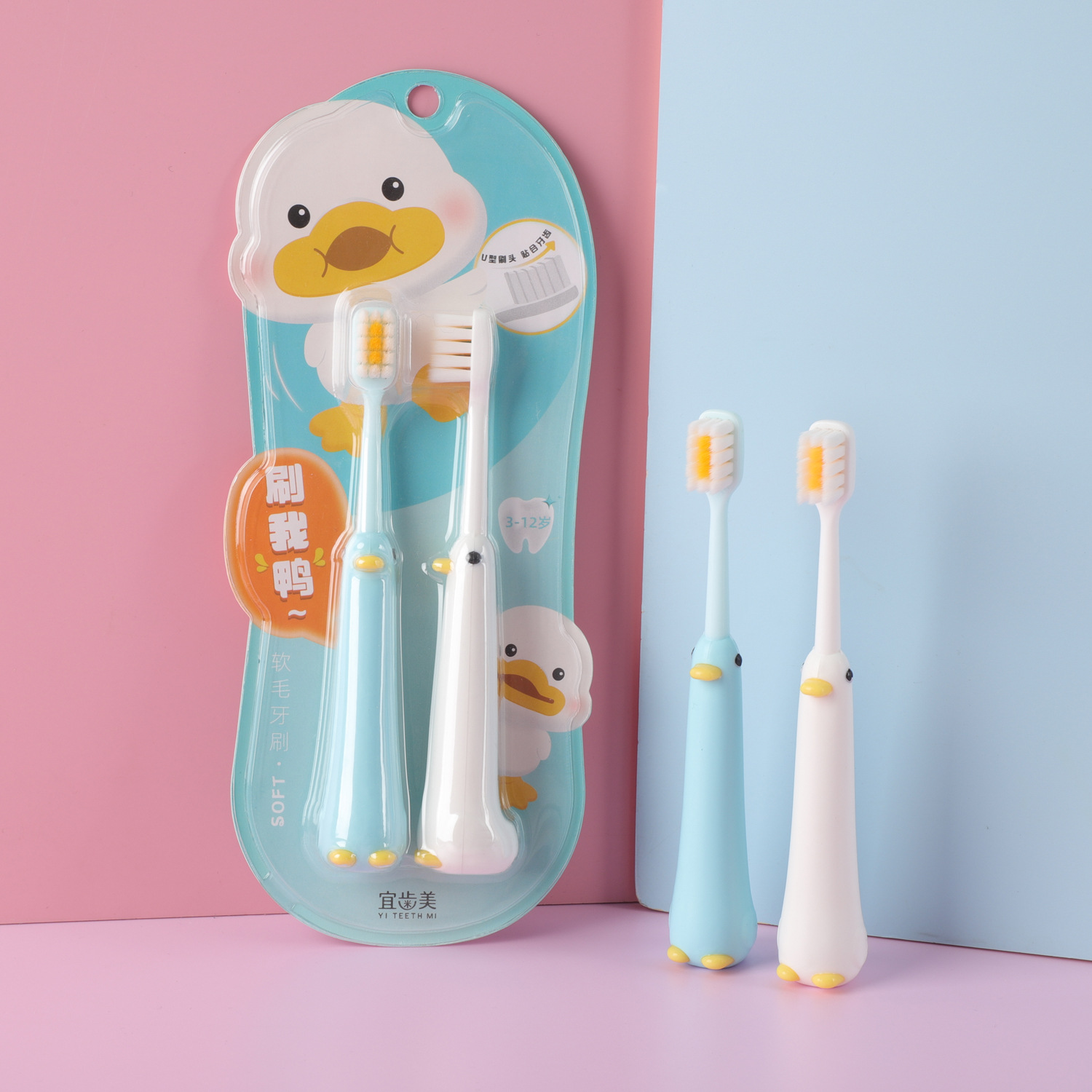 Yijimei 어린이 칫솔 2 팩 만화 작은 노란색 오리 가정용 청소 및 잇몸 보호 Douyin 슈퍼마켓 공장 도매스토어 가기