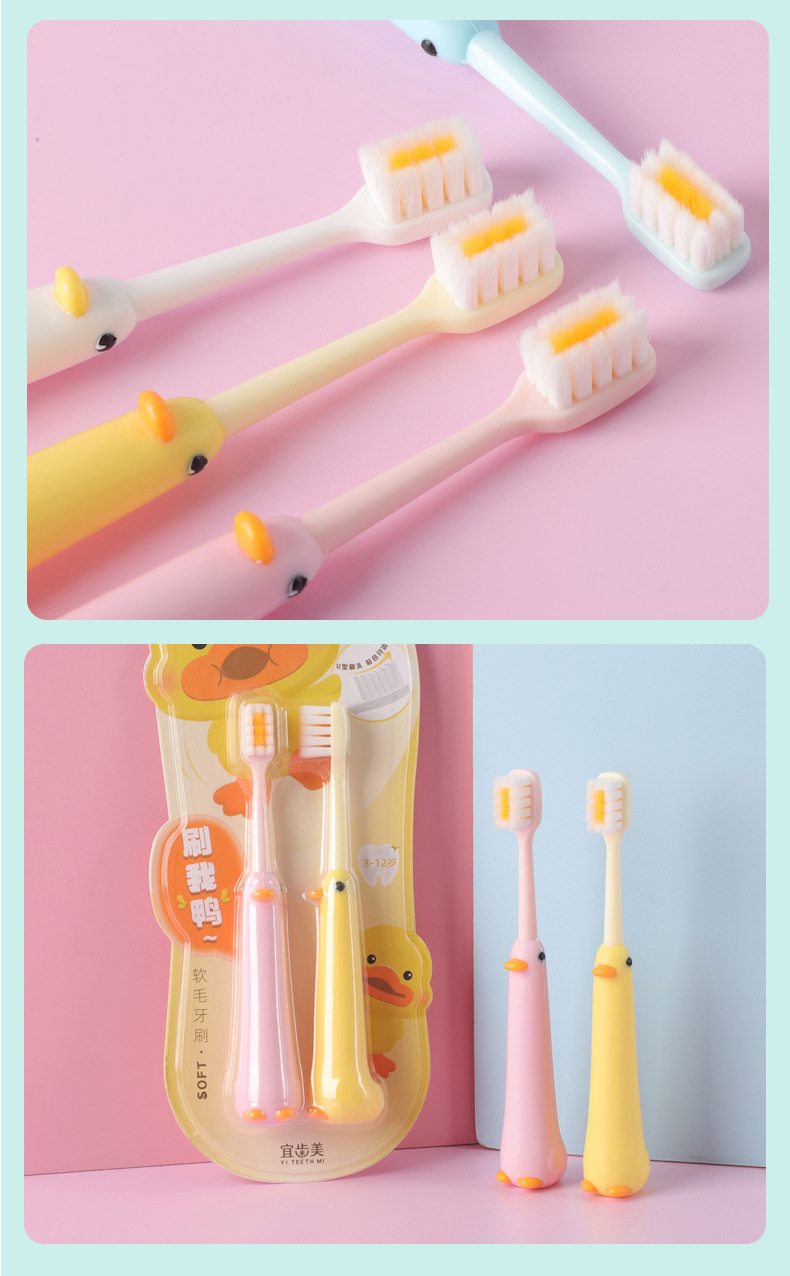 Yijimei 어린이 칫솔 2 팩 만화 작은 노란색 오리 가정용 청소 및 잇몸 보호 Douyin 슈퍼마켓 공장 도매