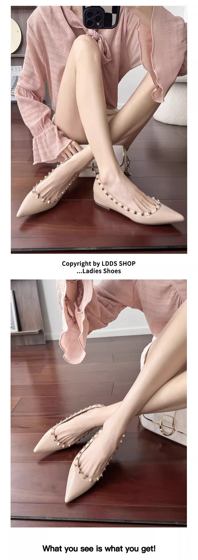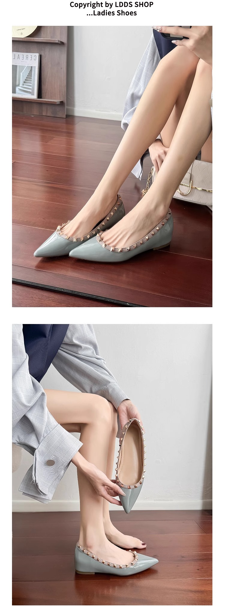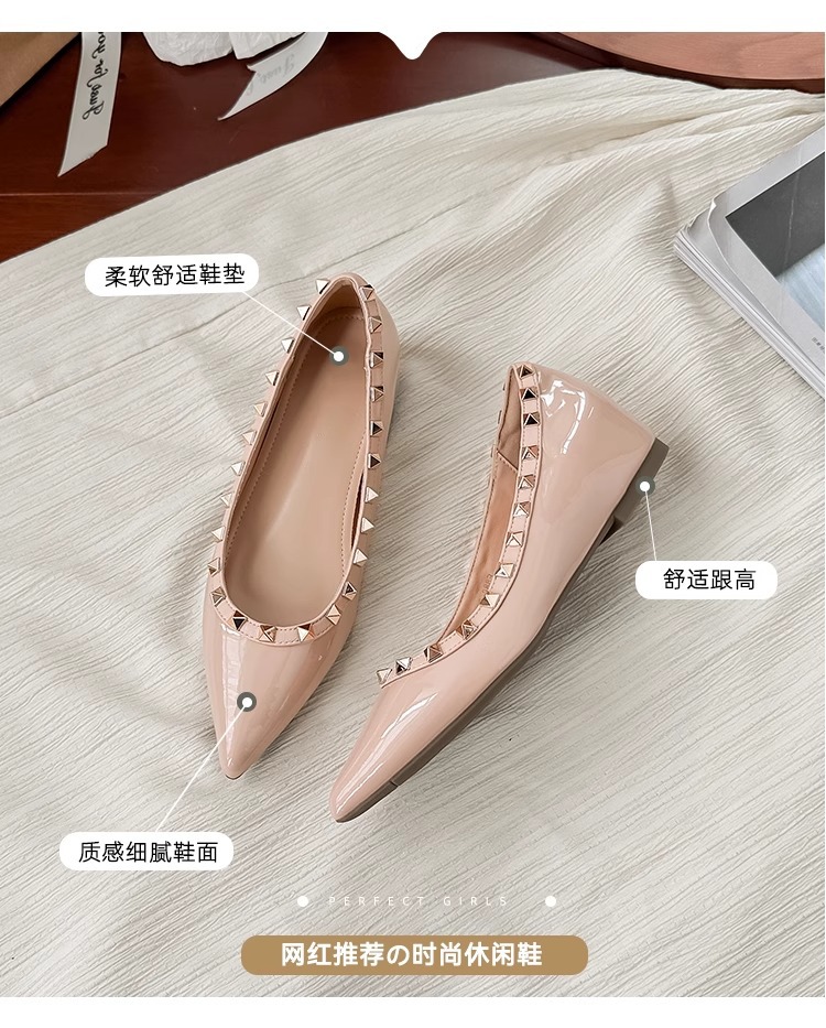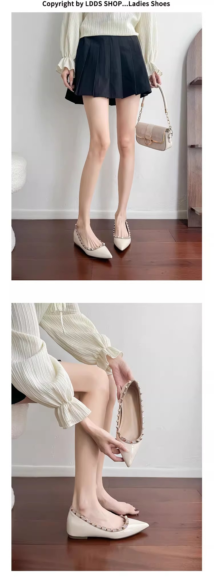 양가죽 버전 ~ 여성용 프렌치 누드 리벳 포인티드 토 슈즈, 여름 플랫 바닥, 작은 향기로운 스타일의 펌프스 메리 제인 슈즈스토어 가기