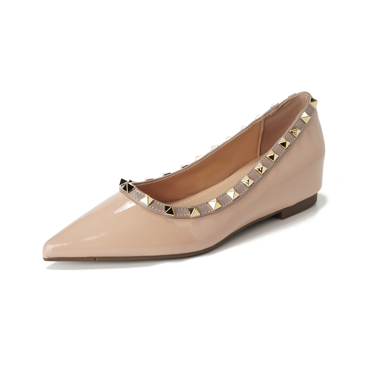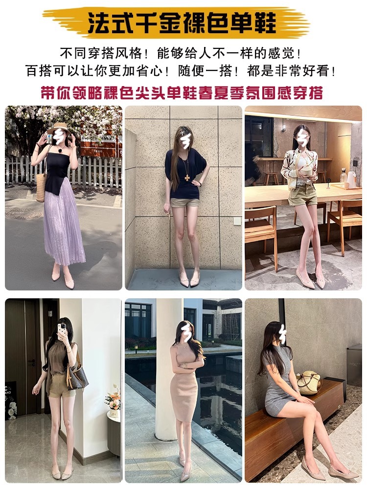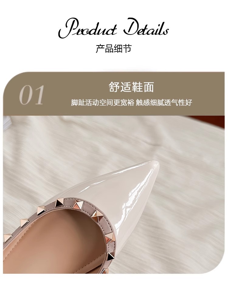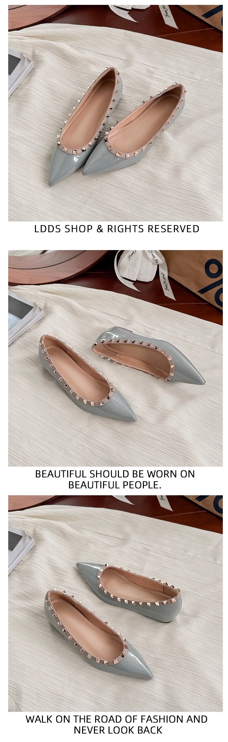 양가죽 버전 ~ 여성용 프렌치 누드 리벳 포인티드 토 슈즈, 여름 플랫 바닥, 작은 향기로운 스타일의 펌프스 메리 제인 슈즈스토어 가기