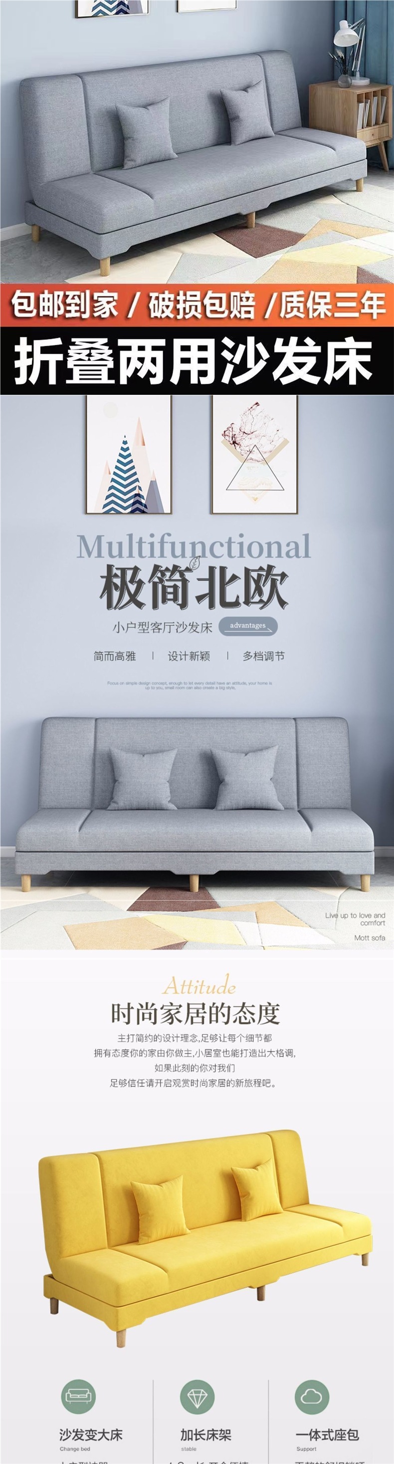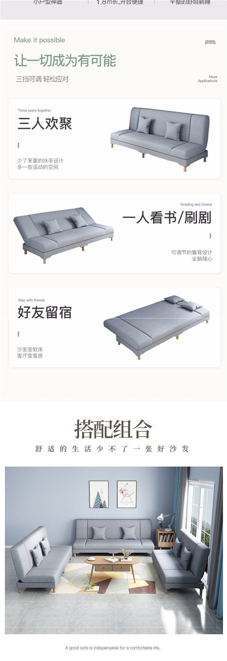 2023 새로운 패브릭 다기능 접이식 소파 침대 일체형 이중 목적 거실 침실 임대 주택 작은 아파트