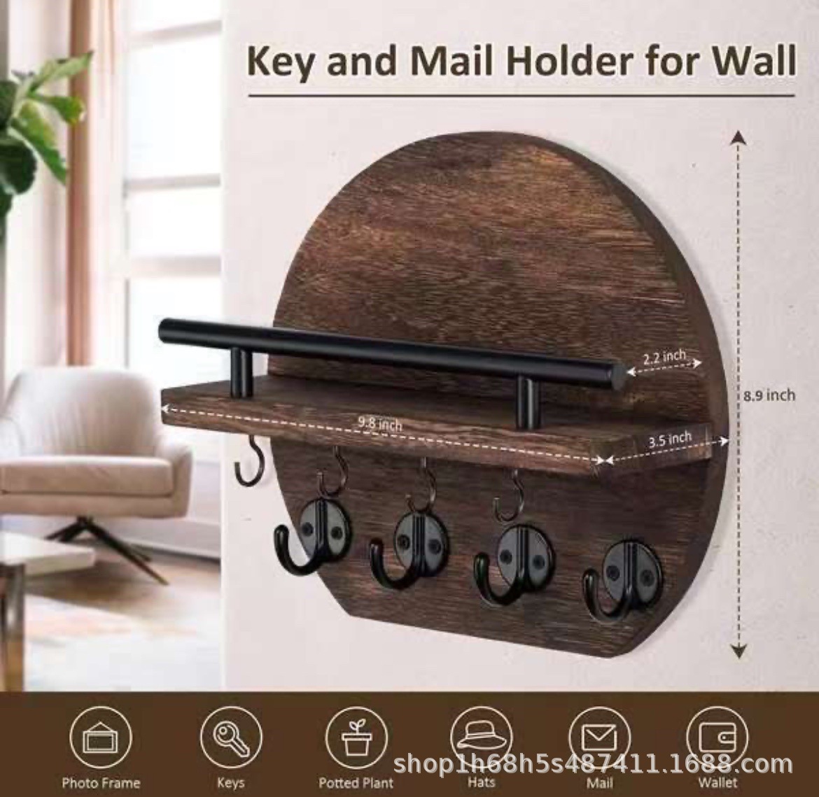 나무 벽 선반 거실 입구 열쇠 선글라스 걸이 둥근 배경 장식 선반 봉투 메일 홀더