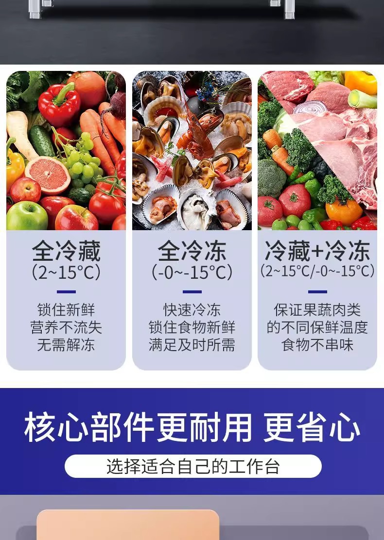 냉장 작업대 냉동고 상업용 냉장고 냉동고 평면 냉동고 스테인레스 스틸 신선 유지 주방 작업대