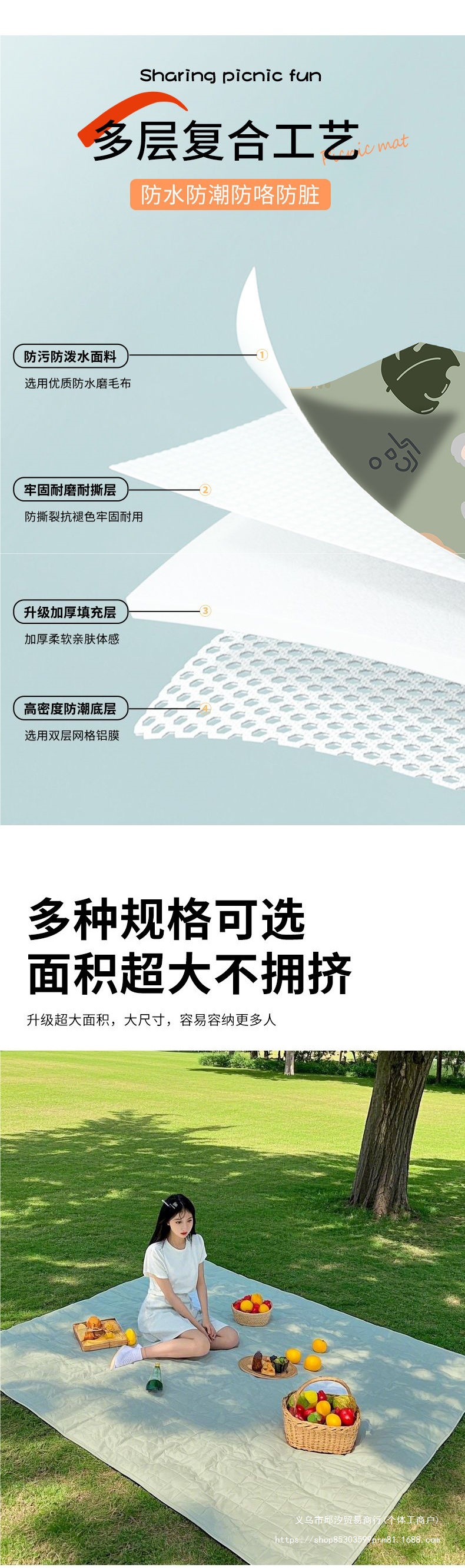 • 베이지색 [1*1.5m] 소파처럼 부드러워 2~4명이 앉을 수 있습니다. 말아서 손바닥만한 크기입니다.