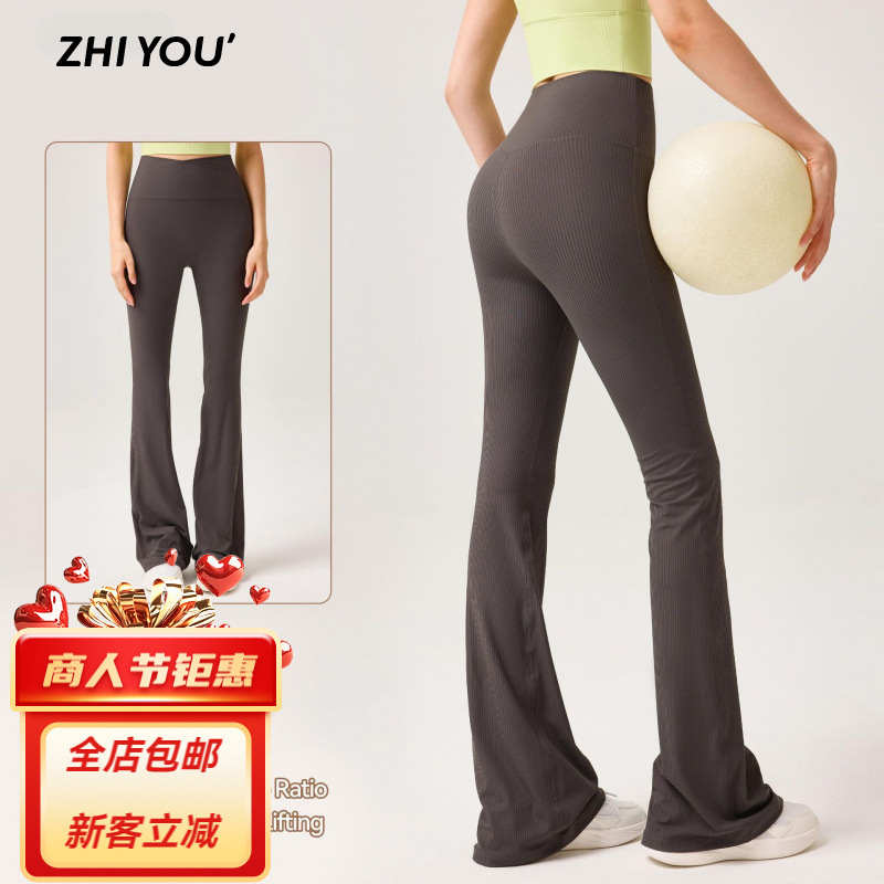 신상 고탄력 누드 요가 플레어 팬츠, 슬리밍 복숭아 엉덩이 마이크로 플레어 팬츠, 캐주얼하고 활용도가 높은 타이트한 피트니스 팬츠