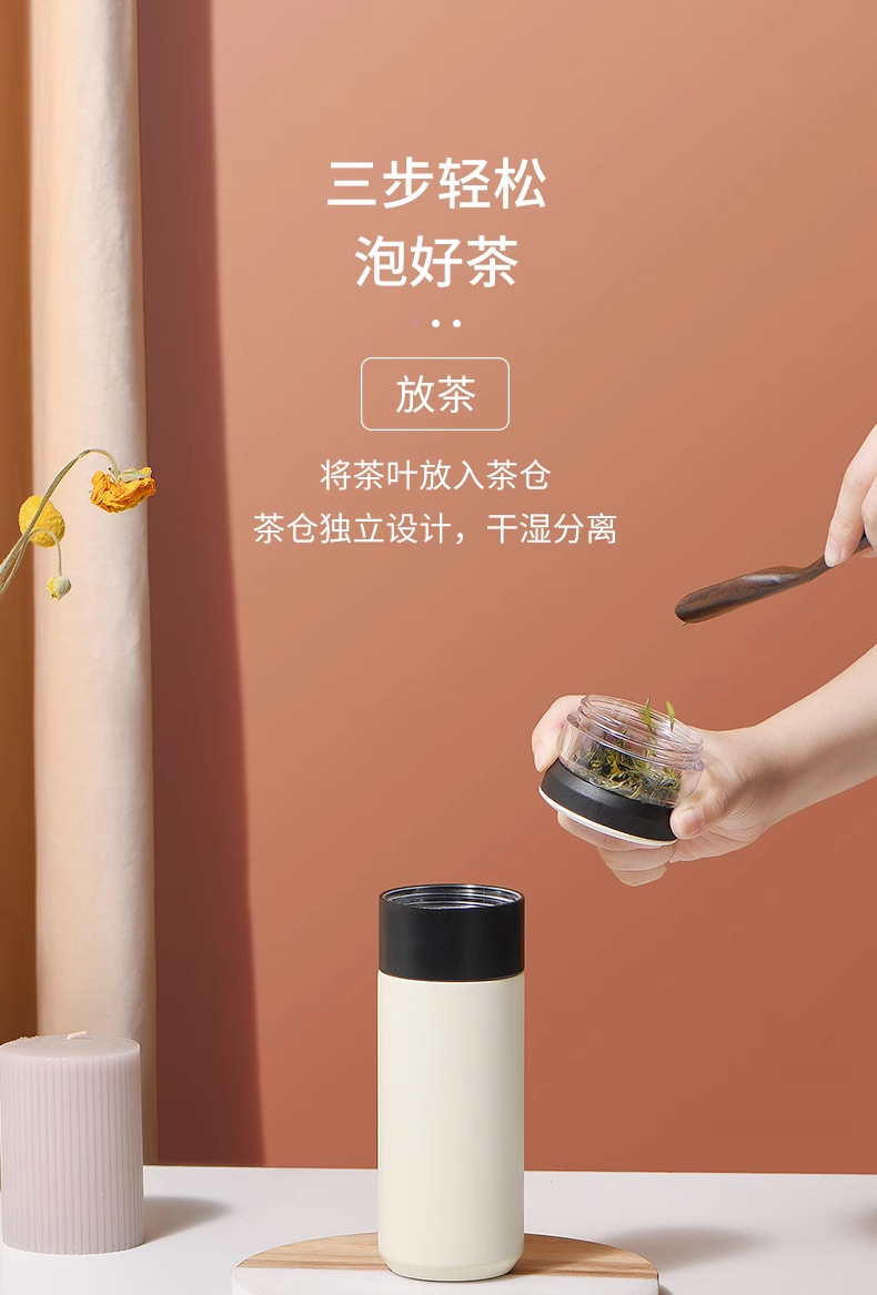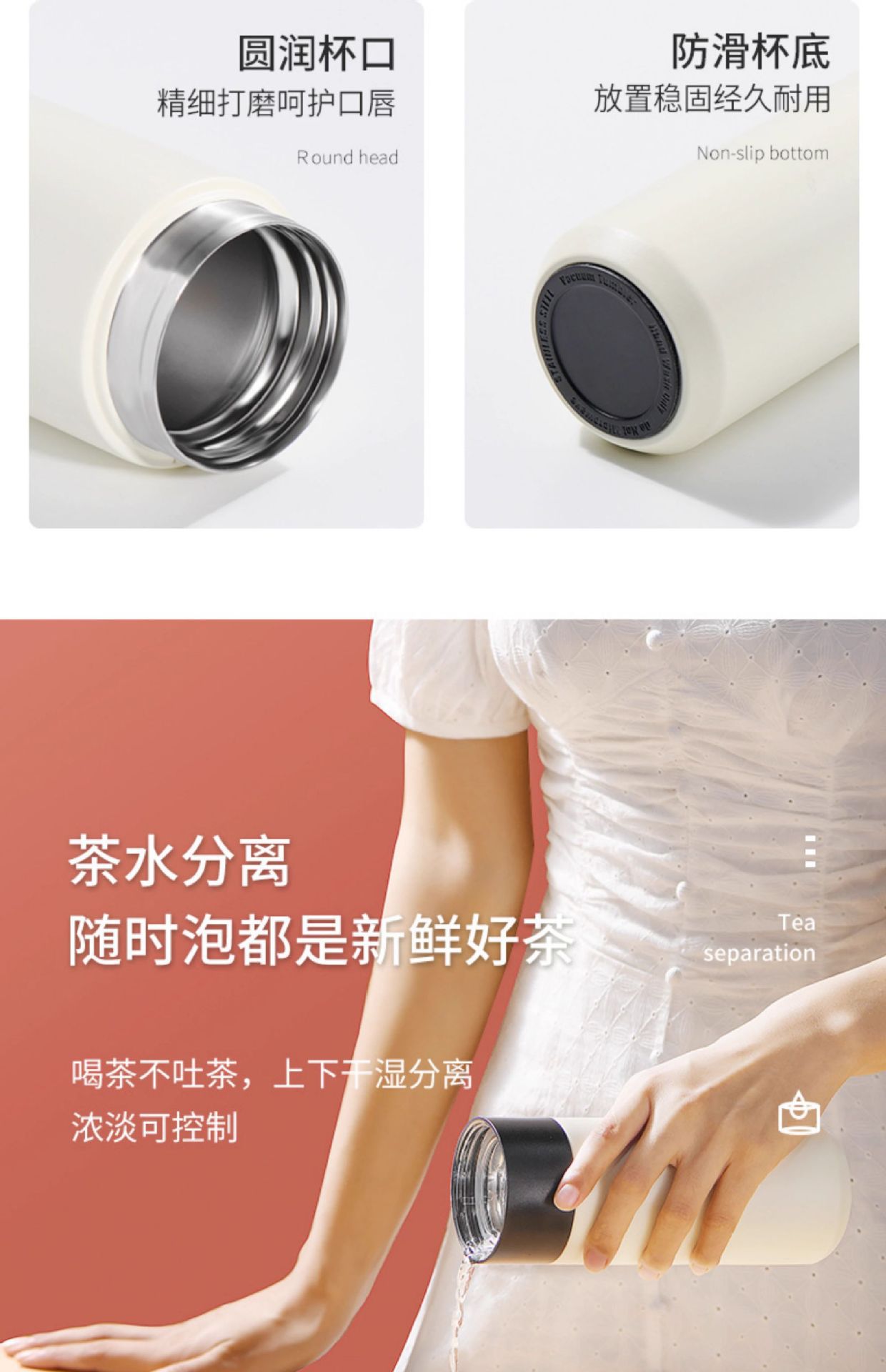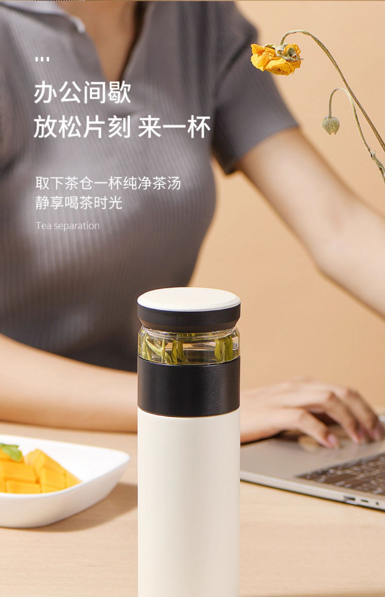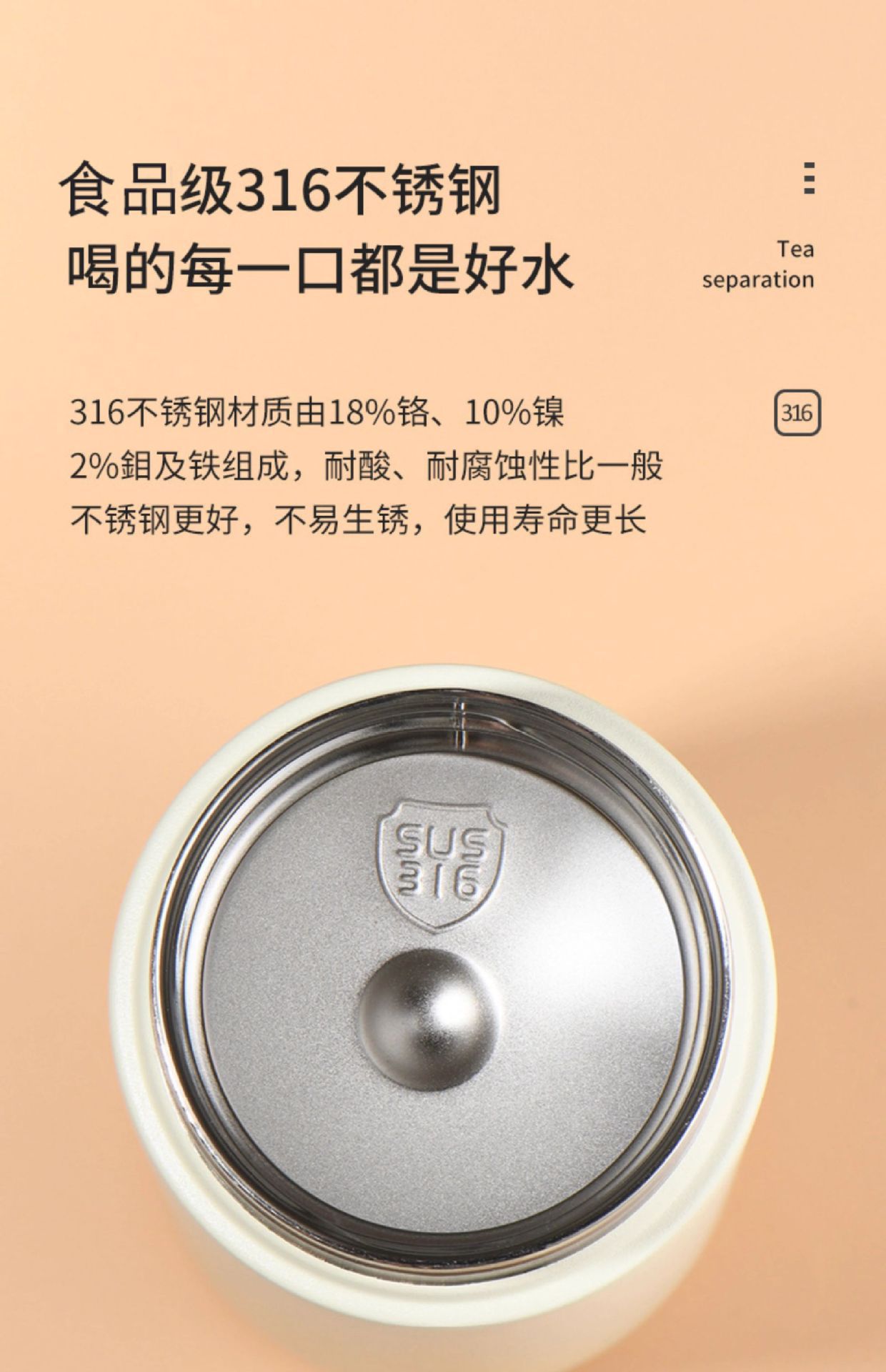 새로운 차와 물 분리 보온병 컵 316 스테인레스 스틸 워터 컵 남성용 가정용 두꺼운 컵 세라믹 선물 상자 티 컵