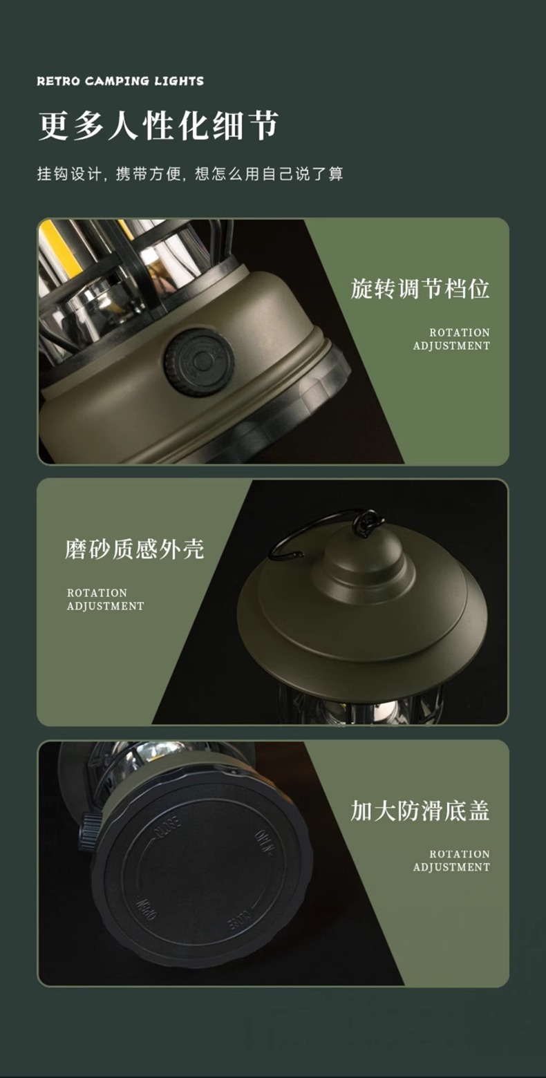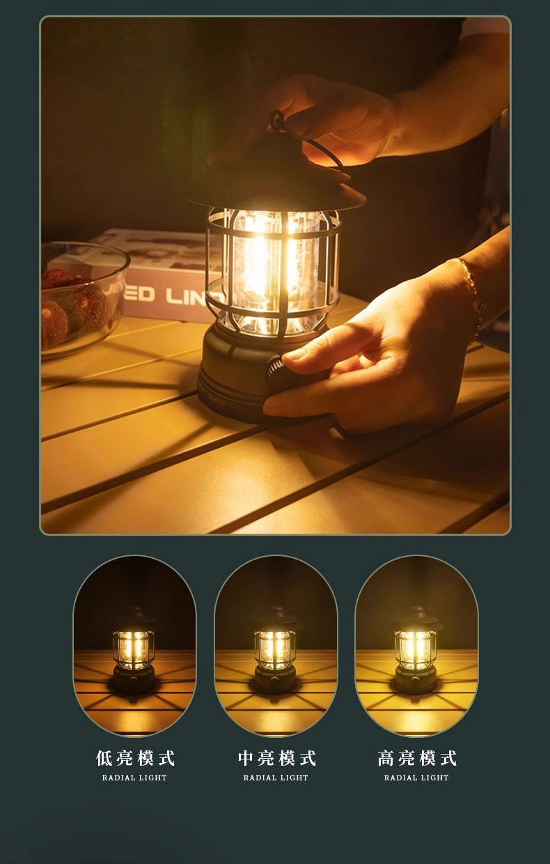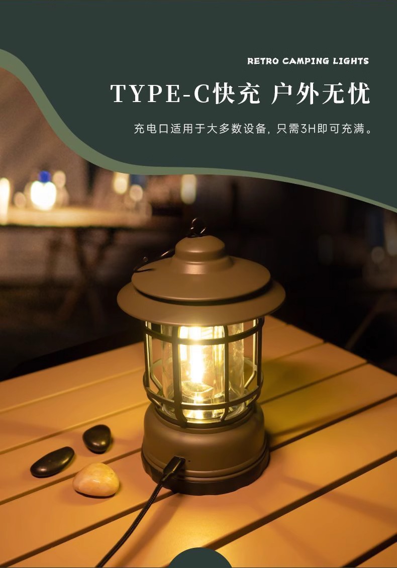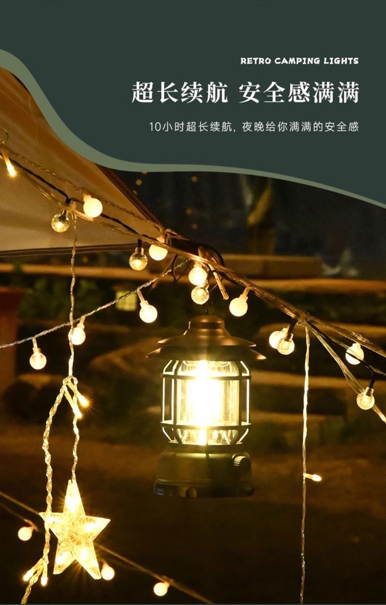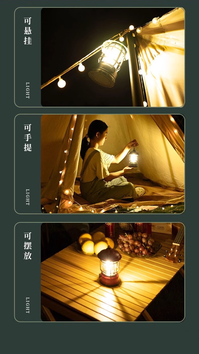 캠핑 조명, 야외 복고풍 말 랜턴, 매우 긴 배터리 수명, 캠프 캠핑 조명, 매점 분위기 조명, 충전식 조명, 텐트 조명