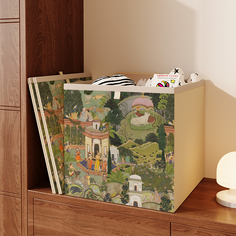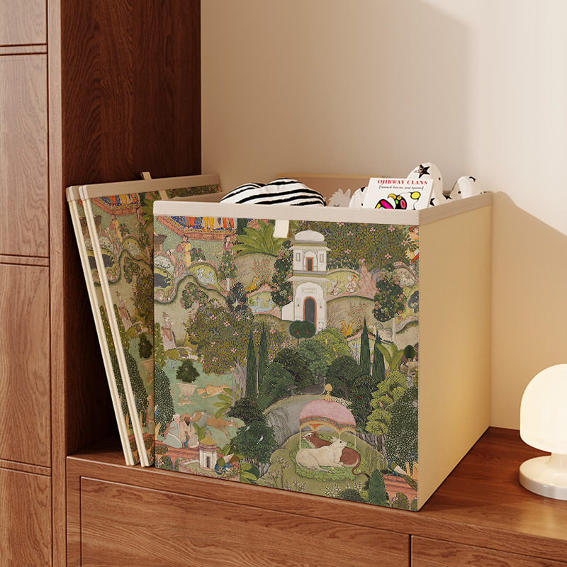 중국풍 카라크 체크무늬 수납함 천 수납 바구니 대용량 접이식 수납함 도매