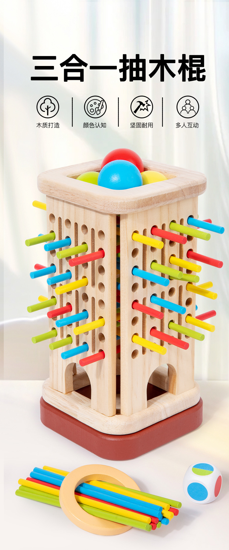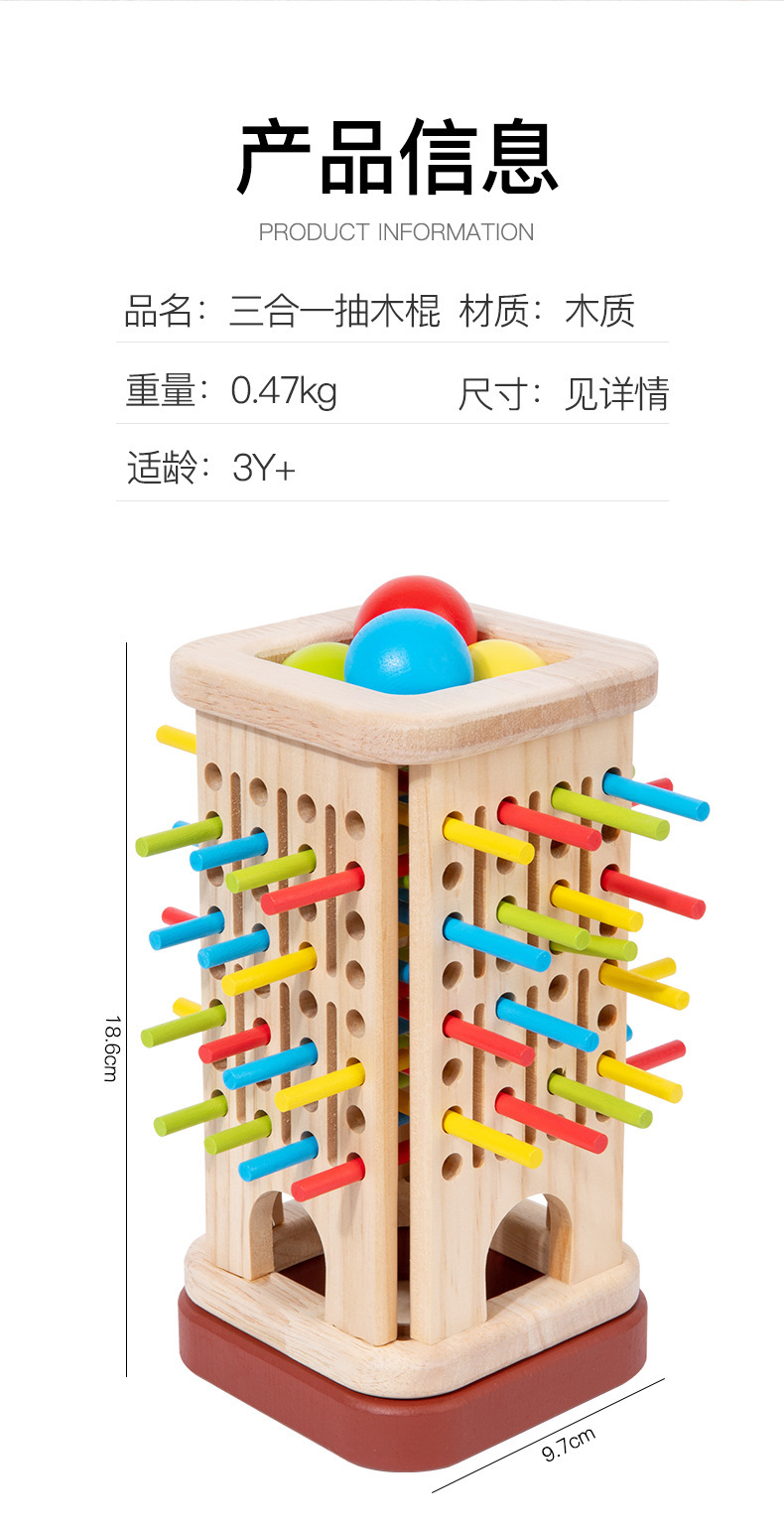 나무 어린이 교육 장난감 작은 3-in-one 스틱 게임 조기 교육 대화 형 몬테소리 교육 보조 부모-자식 데스크탑스토어 가기