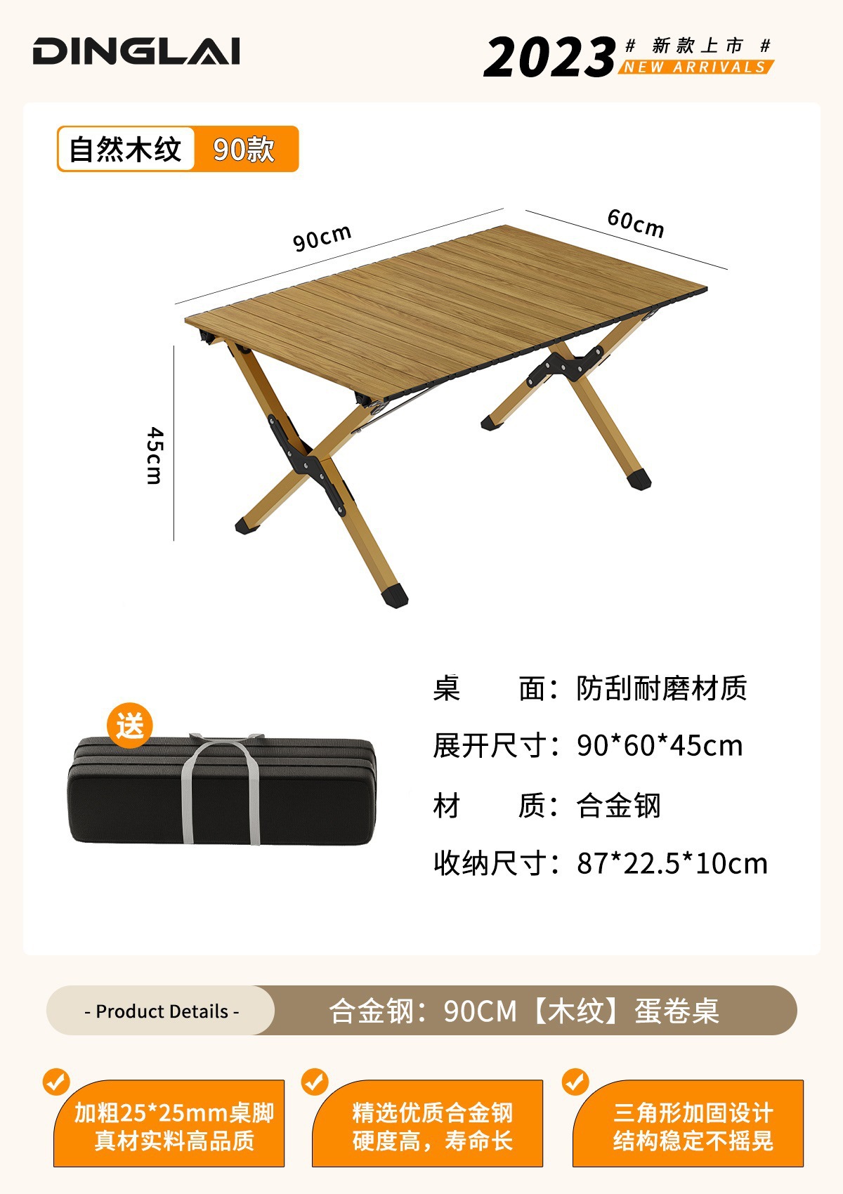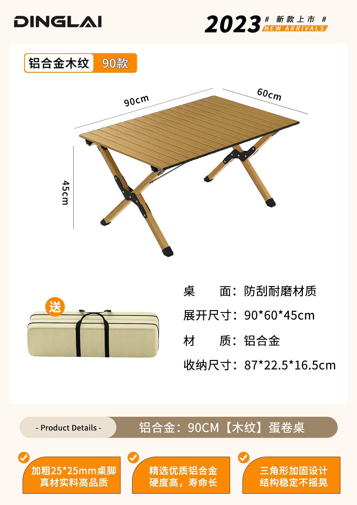 • [휴대용 알루미늄 합금 나뭇결] 90CM 에그롤 테이블 - 무료 보관 가방(가벼운 여행)