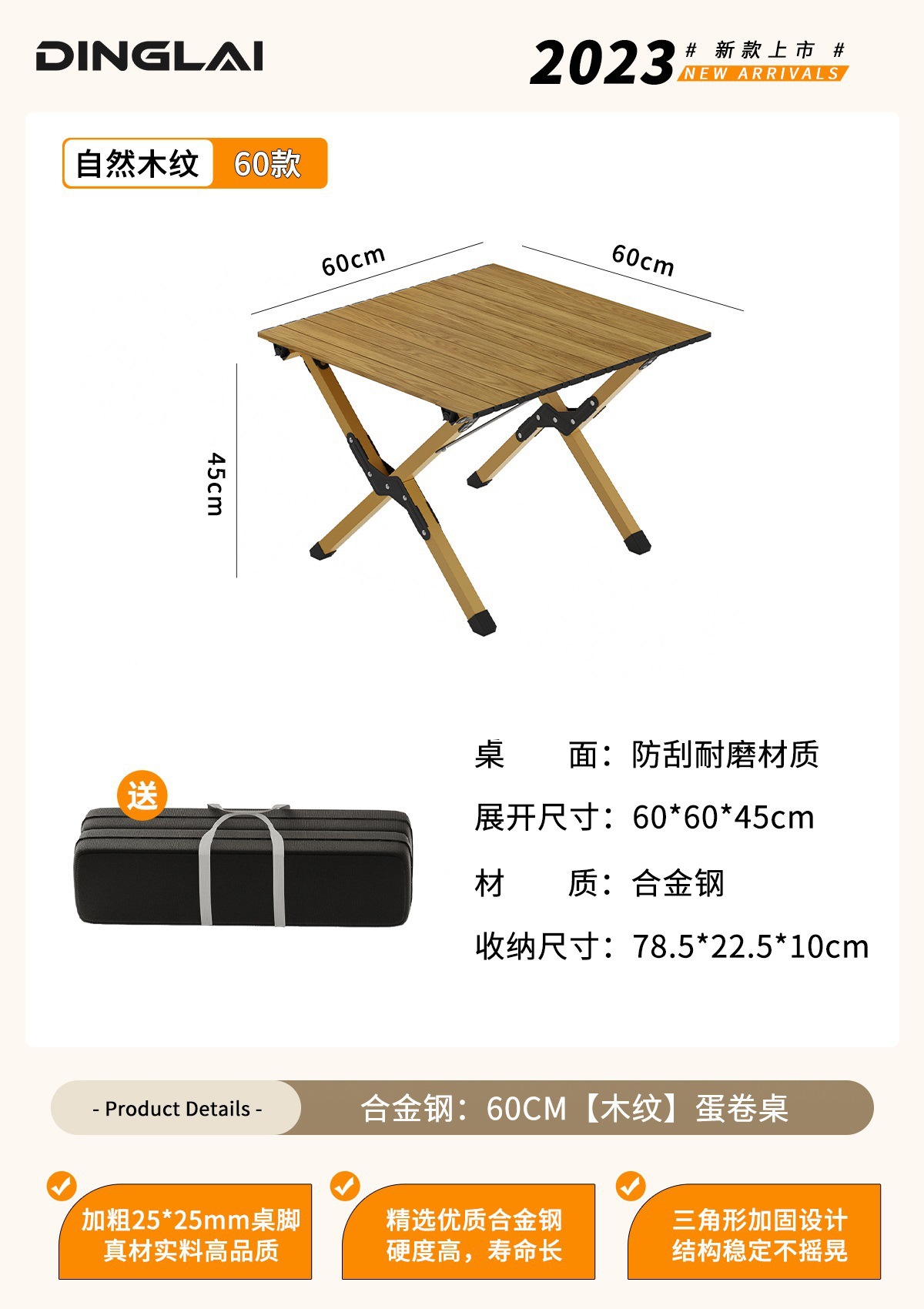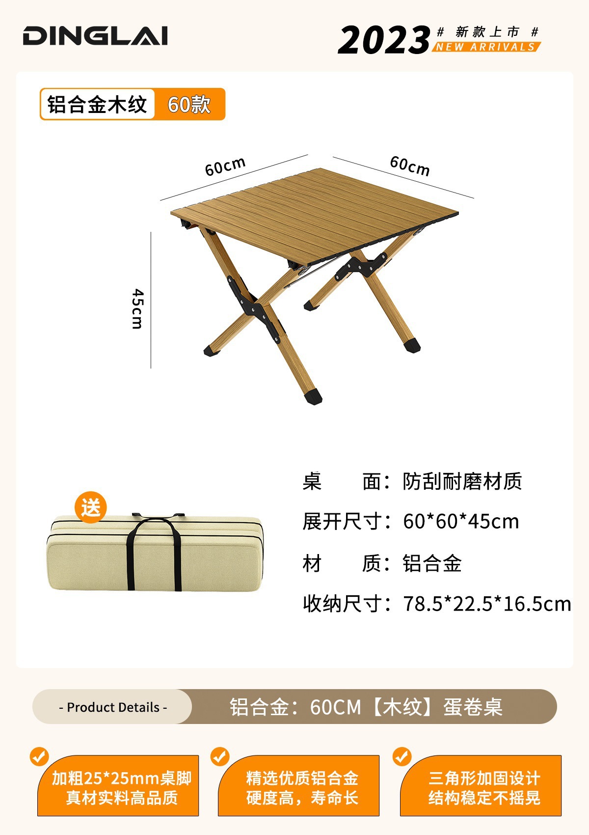 • [휴대용 알루미늄 합금 나뭇결] 60CM 에그롤 테이블 - 무료 보관 가방(가벼운 여행)