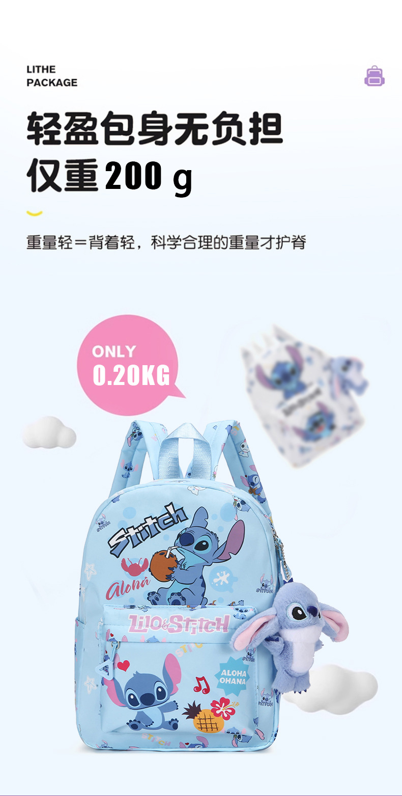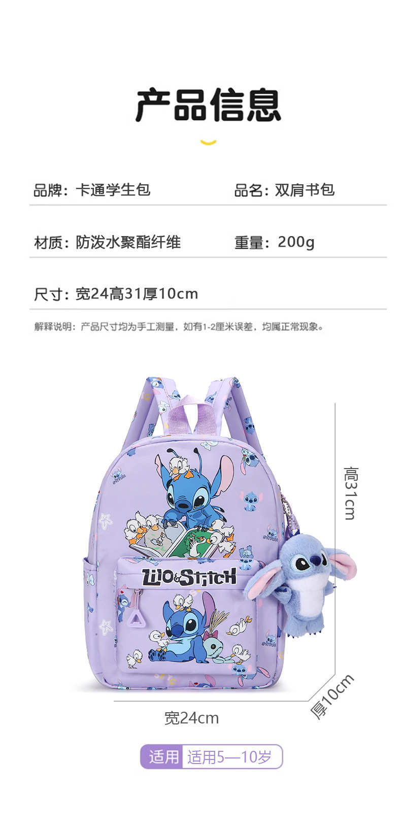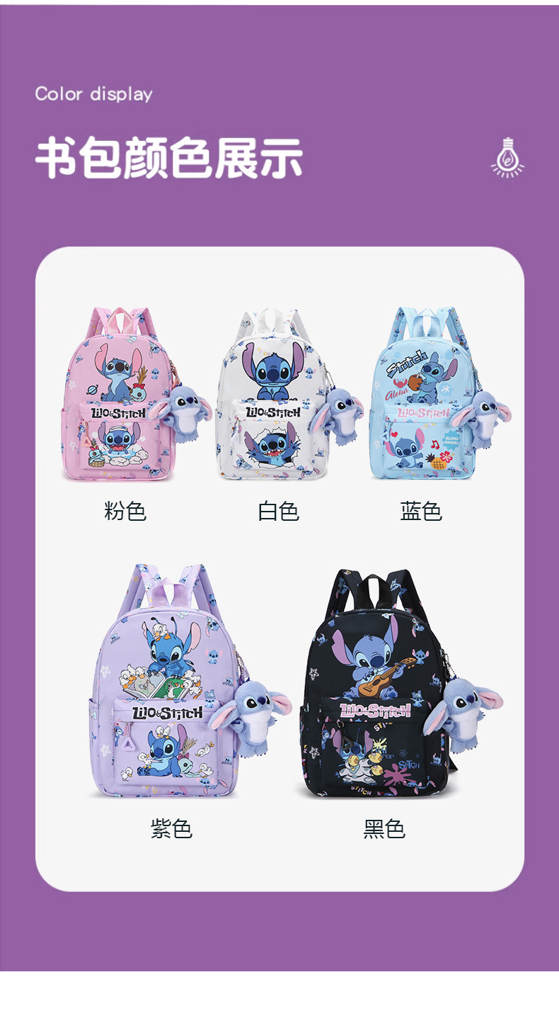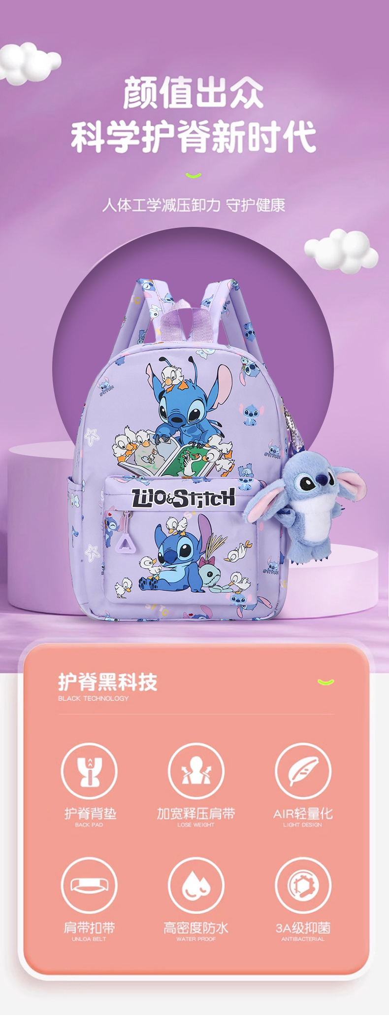 스티치 어린이 배낭 만화 학교 가방 유치원 학생 가방 귀여운 배낭 다목적 소녀 배낭