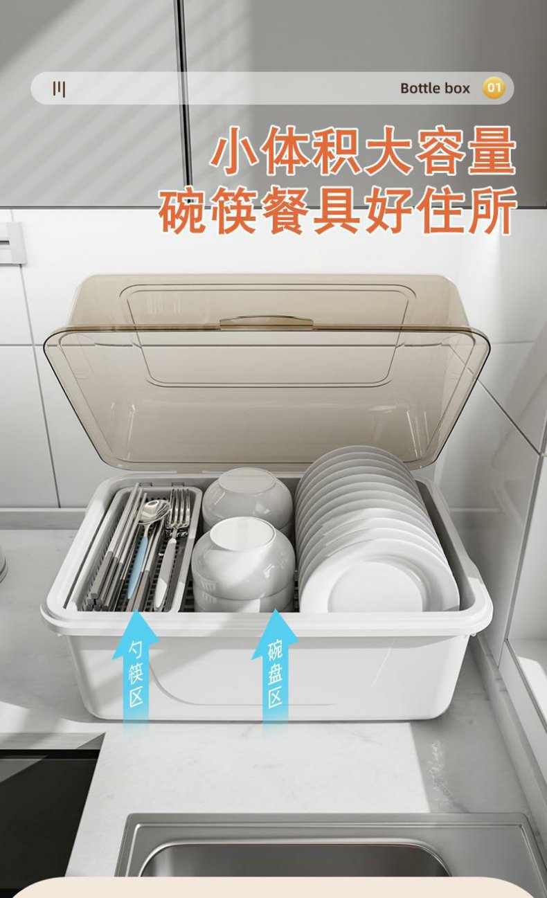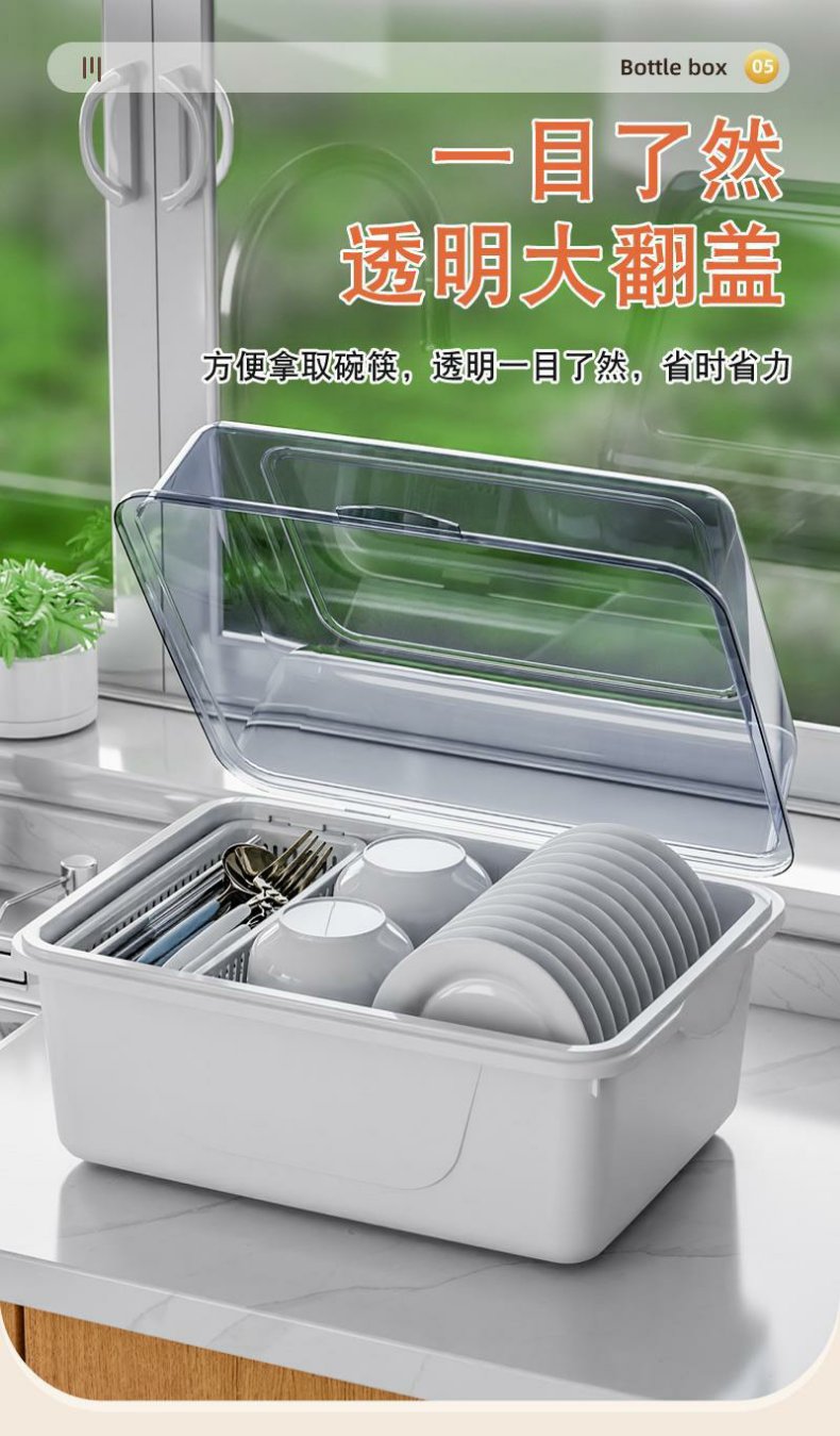 뚜껑이 있는 주방 배수 캐비닛, 접시 상자, 가정용 접시 랙, 접시 및 젓가락 보관 상자, 조리대스토어 가기