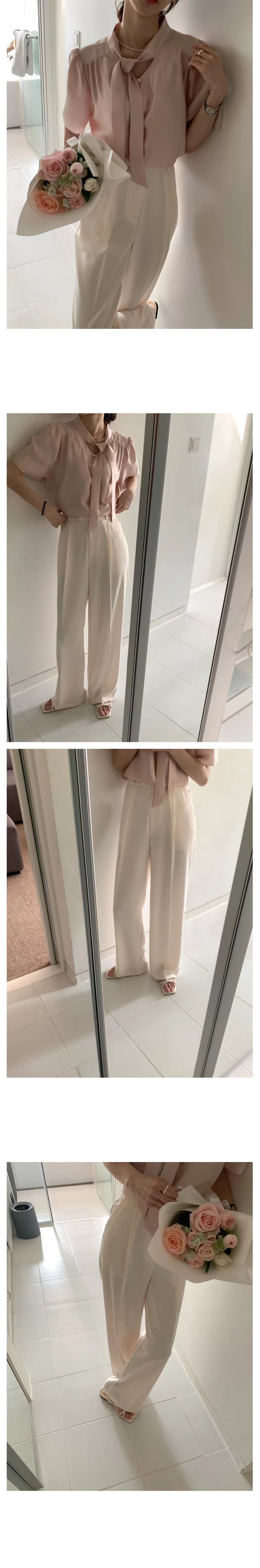 한국 시크 프렌치 젠틀 스타일 플라잉 칼라 앞뒤 디자인 루즈 슬리밍 퍼프 슬리브 쉬폰 셔츠 여름 드레스