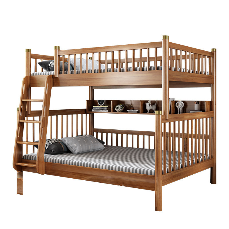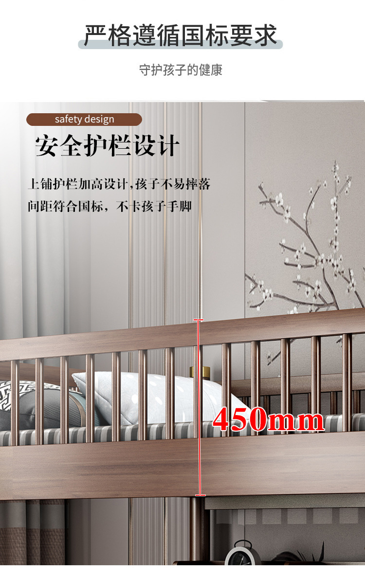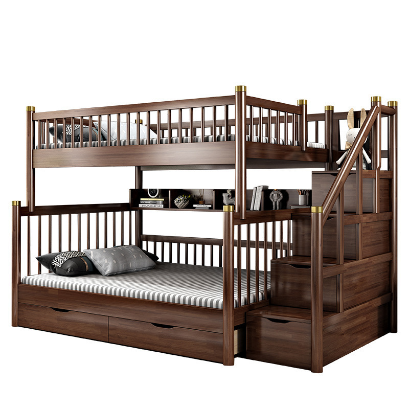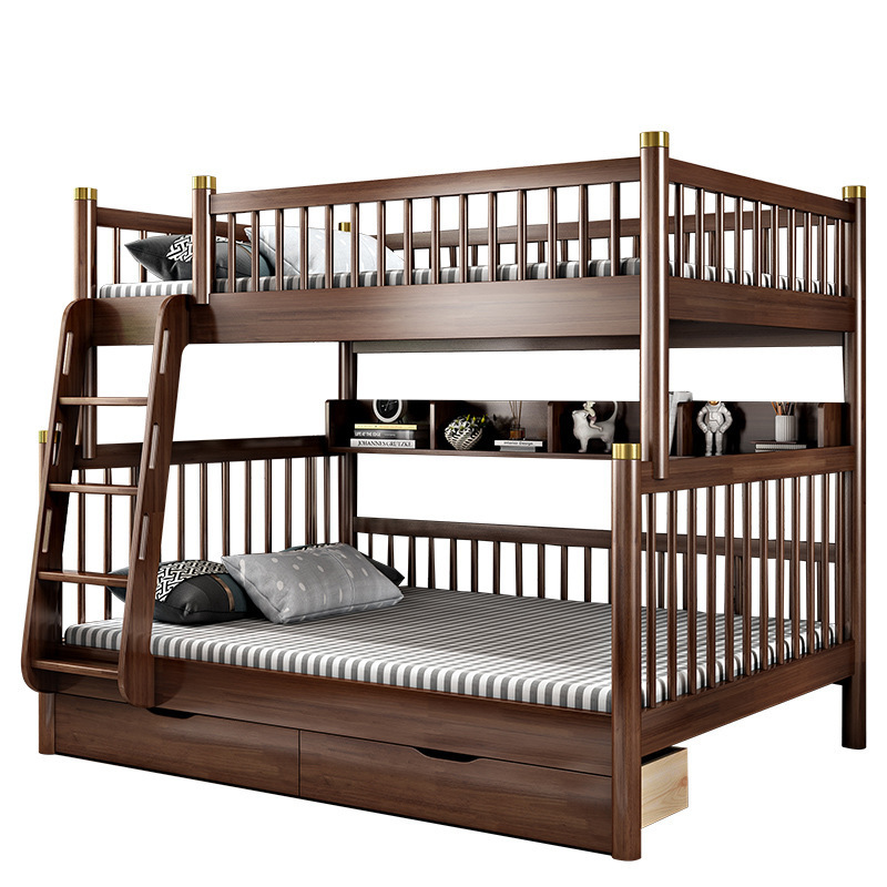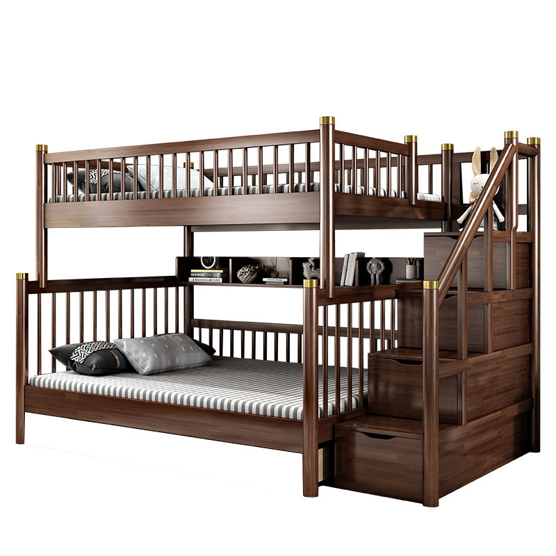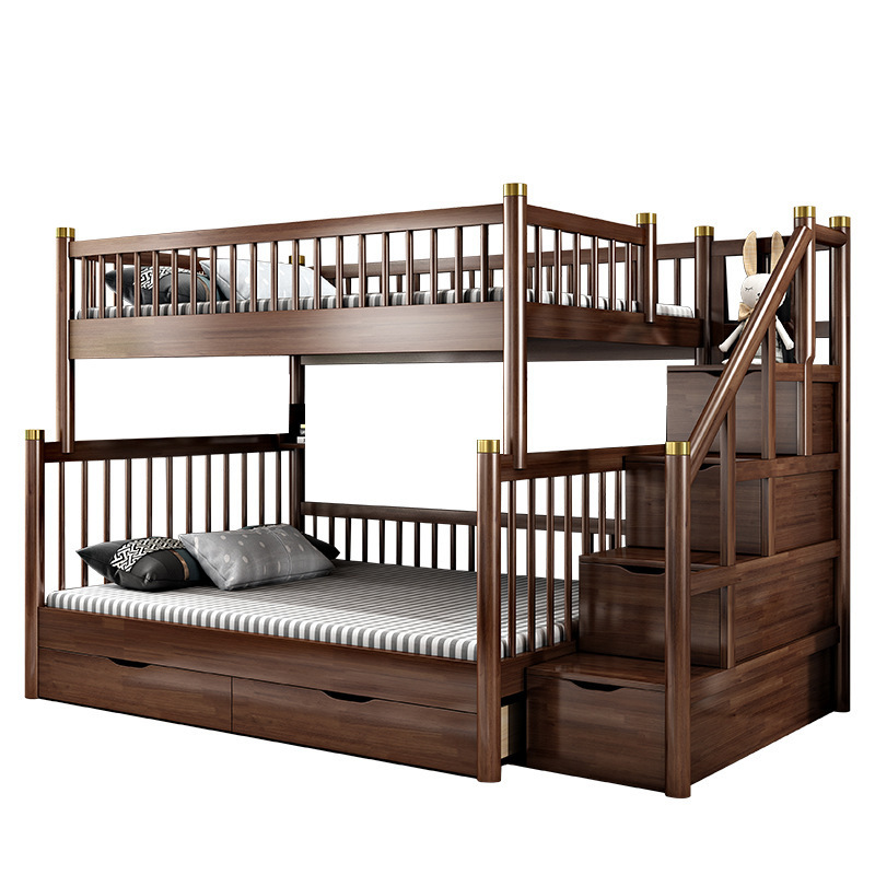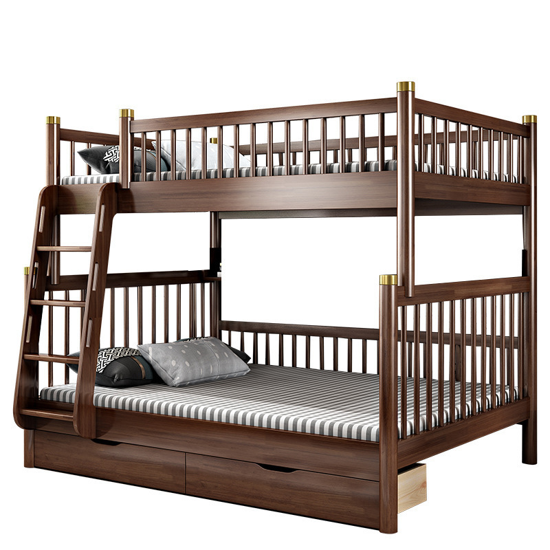 새로운 중국 스타일의 단단한 나무 이층 침대 호두 어린이 이층 침대 간단한 작은 아파트 현대식 높낮이 침대 이층 침대