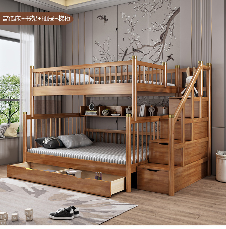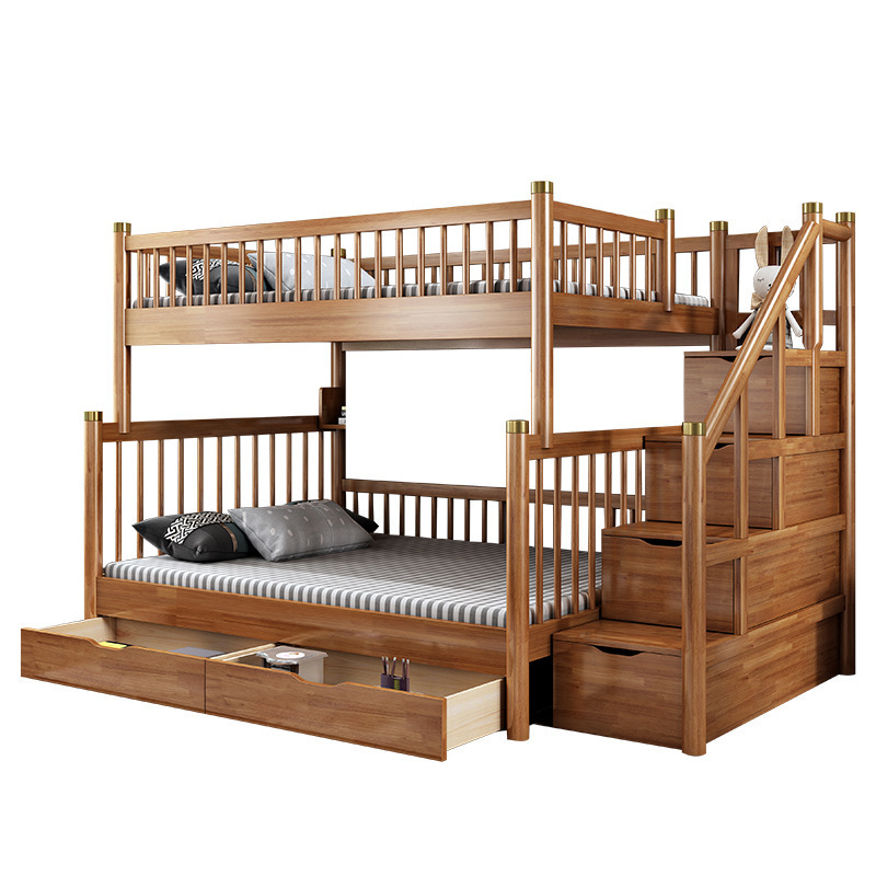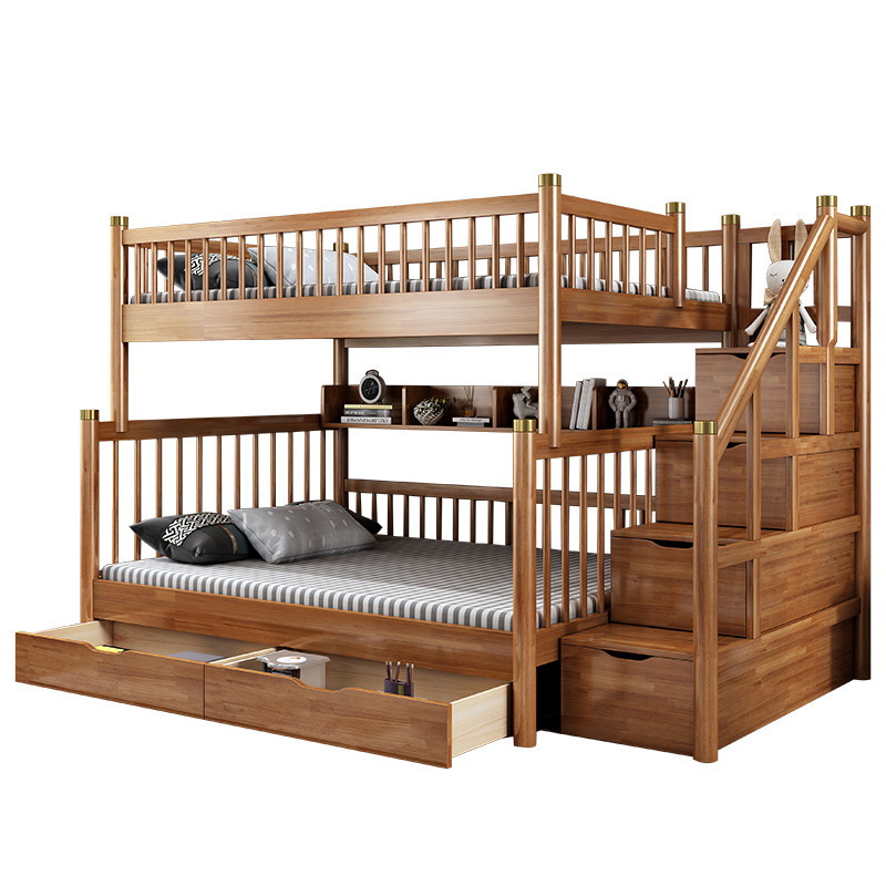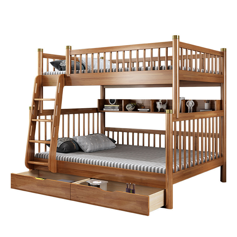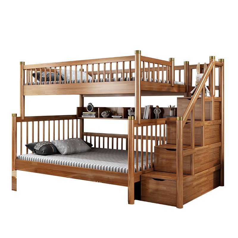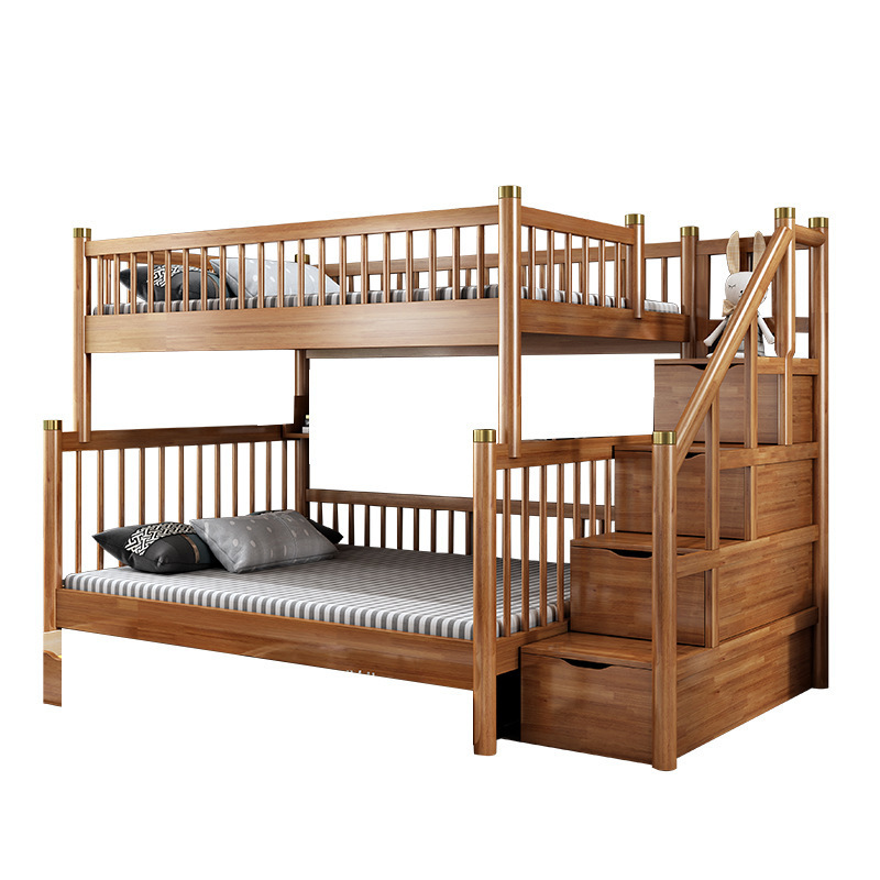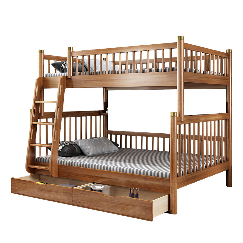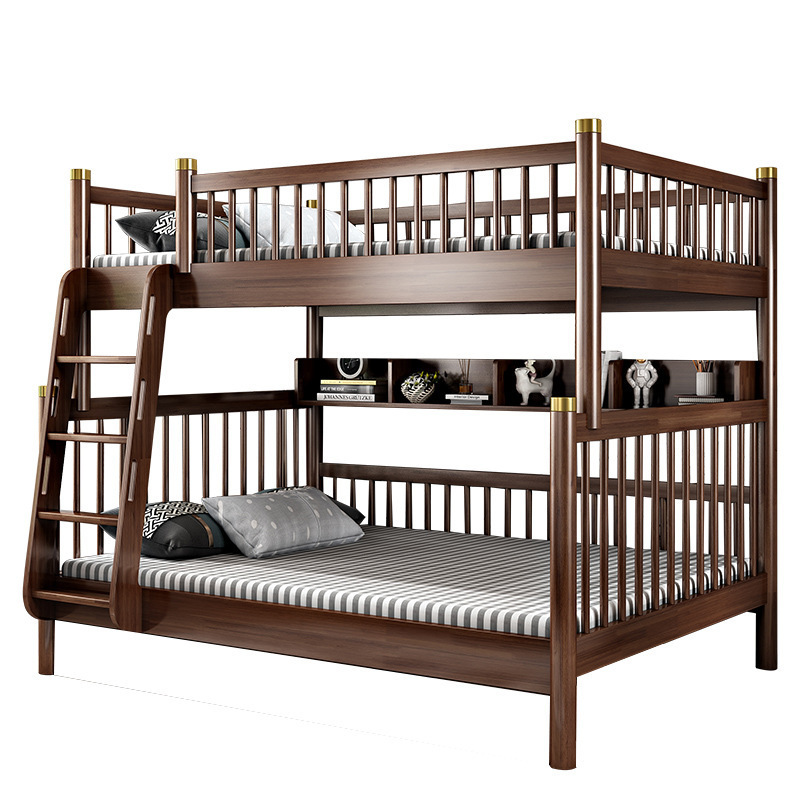 새로운 중국 스타일의 단단한 나무 이층 침대 호두 어린이 이층 침대 간단한 작은 아파트 현대식 높낮이 침대 이층 침대